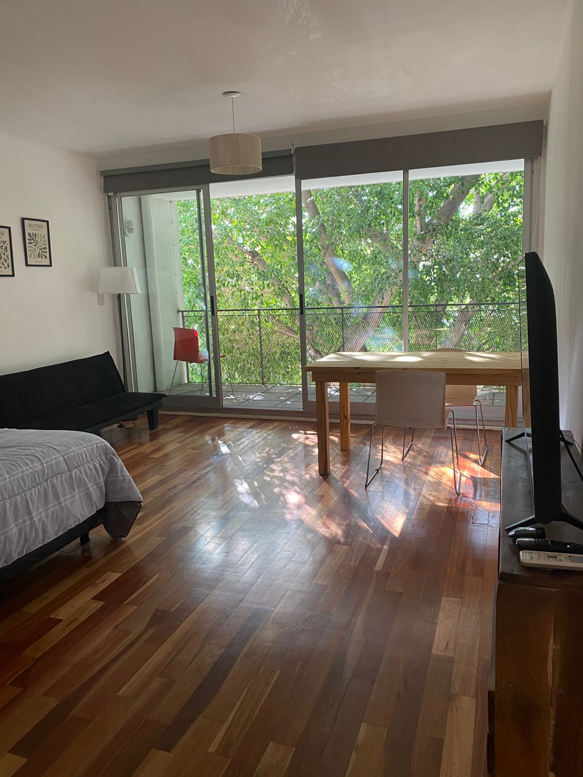 46 公尺的寬敞公寓,有開放式景觀和陽台,超級明亮且安靜。大樓有游泳池。非常安靜的區域,但靠近一切,距離大道一個街區。靠近Cabildo和商場。距離方尖碑半小時,距離地鐵5個街區。有WiFi和有線電視。床單服務。