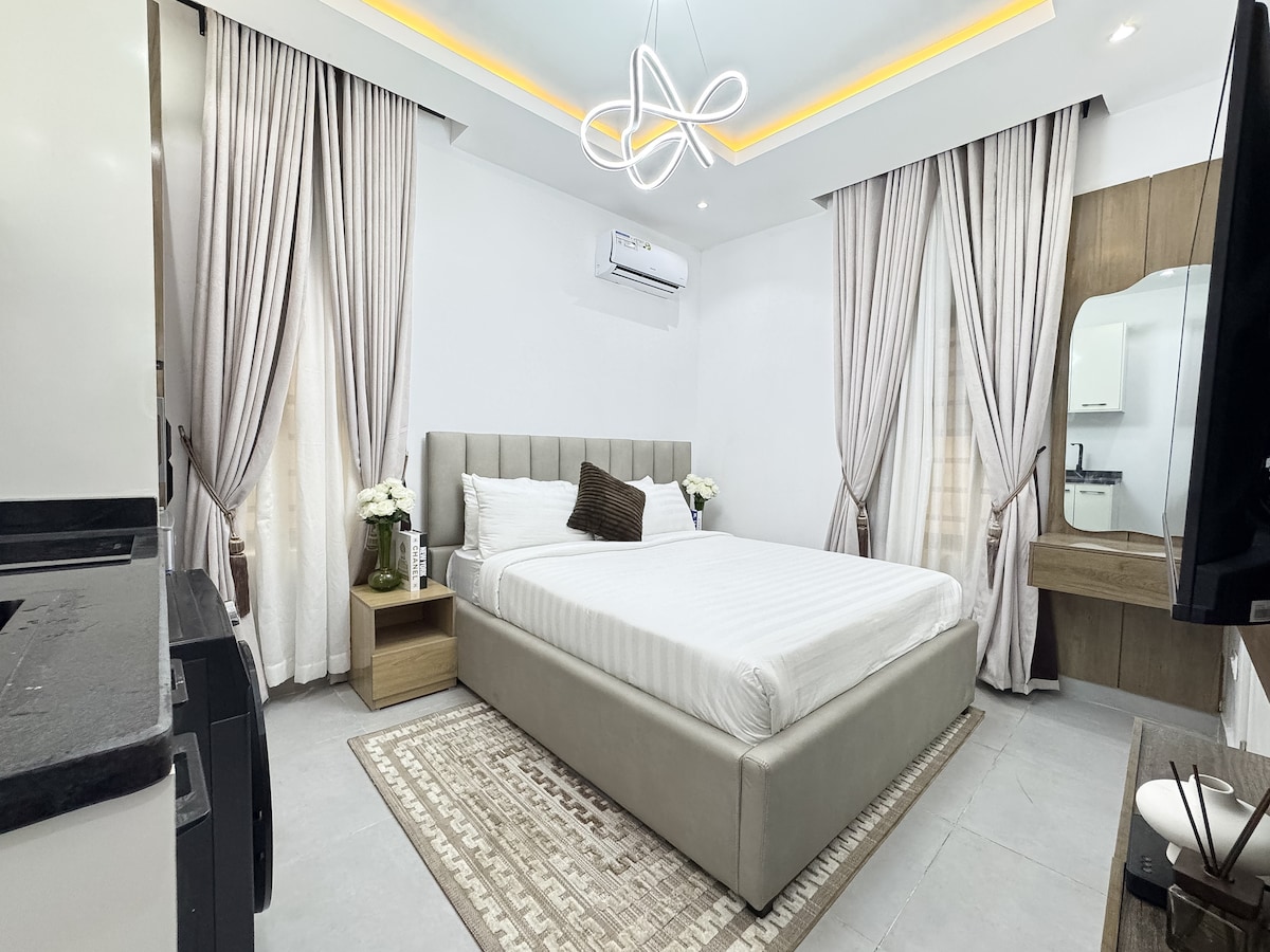 Space Luxury房源坐落在Lekki充滿活力的中心地帶,將便利和休閒完美融合。 距離著名的Elegushi海灘僅5分鐘路程,您可以享受令人驚嘆的休息室、兒童遊樂區和風景如畫的景色。 步行1分鐘即可抵達雜貨店、加油站、藥店和當地市場。 公寓距離熱門活動中心、休息室和夜總會僅5分鐘車程,是放鬆和娛樂的理想場所。