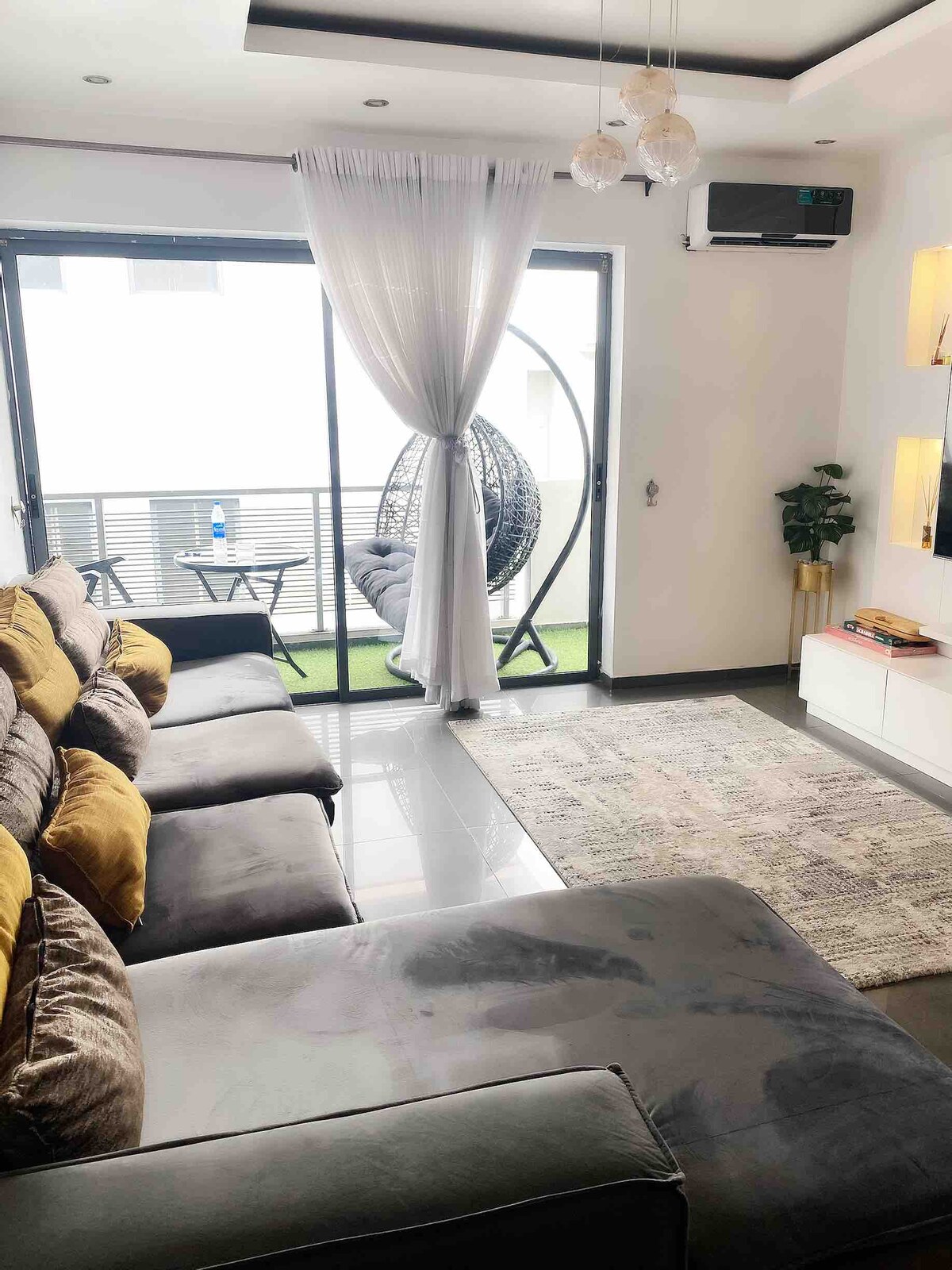 With 24 hrs power supply, our cozy, spacious and serene space is a stylishly assembled smart home intended to captivate and please guests, while optimizing comfort and relaxation. The concept employed in this space is a combination of very high end furniture aesthetically displayed in a traditional minimalist expression. You can hang up playfully on our Hammock chairs in the living room or at the balcony and enjoy the stunning view of the ocean or you can simply rest easy on our comfy beds.