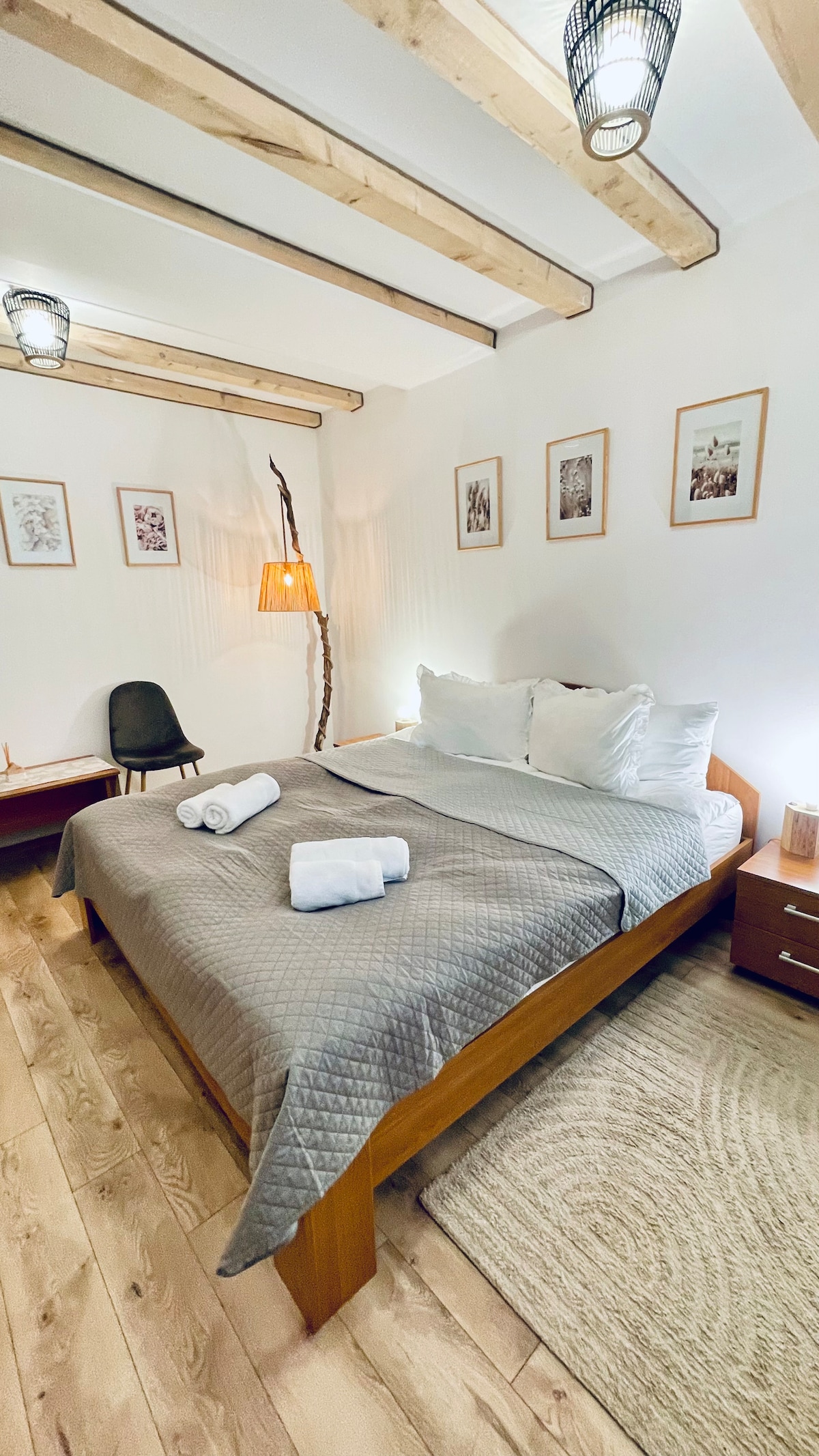 這間風格的房源靠近Bran市中心。 步行10分鐘即可抵達布蘭城堡。 開車前往房源非常方便。 靠近許多旅遊景點。 我們提供自助入住。 房屋內有花園,包括燒烤和2個停車位。 有大型開放式起居空間、三間臥室、兩間衛浴和廚房。 您可以獨享整個公寓,沒有共用區域。 設備齊全、寬敞舒適,配有Wi-Fi、電視(衛星)和花園