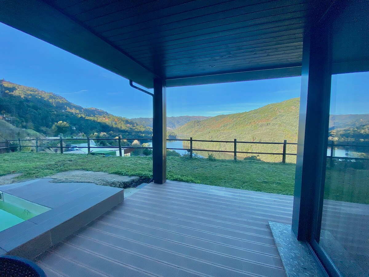 歡迎來到您在Gerês的聖殿—一棟位於2樓的4間臥室別墅。 我們的別墅設計有令人難忘的自然美景。 每個房間都能看到瀑布的全景 在設備齊全的2間廚房中用愛烹飪,配備現代化電器、檯面空間和您所需的一切。2間漂亮的客廳、75英寸智慧電視+ 55英寸OLED ,從各個角度欣賞瀑布景觀。 這是一個罕見而寧靜的環境,你在葡萄牙其他地方找不到。 私人泳池和按摩浴缸