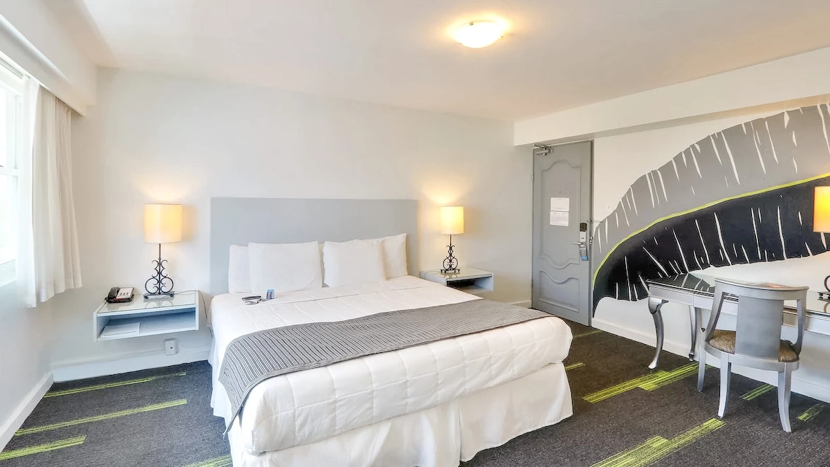 歡迎來到我們坐落在聖胡安市中心的時尚城市度假勝地。 這間現代化的飯店客房設計既舒適又精緻,融合了現代設計和溫馨的待客之道。 我們的飯店房間提供風景如畫的背景,為您的住宿增添一點魔力。 使用我們的毛絨牀上用品、高品質的牀單和精心策劃的家具,體驗舒適。 透過高速Wi-Fi保持聯繫,在智慧電視上觀看您最喜愛的節目或電影