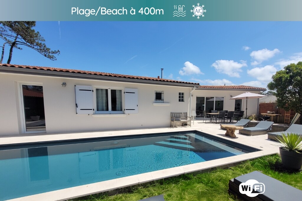 VILLA LUCIA總結! 別墅位於迷人的海濱度假村Vieux-Boucau ,距離北海灘1800公尺,距離海湖1200公尺,距離市中心600公尺,附近有商店和自行車道! 8張牀、4間臥室、2間浴室、帶小廚房/plancha的泳池屋、65平方公尺的露臺、400平方公尺的樹木和花卉花園。 休閒: 7.50x3.50公尺泳池,電動滾輪百葉窗、乒乓球桌、3臺電視和日光浴牀上小睡!
