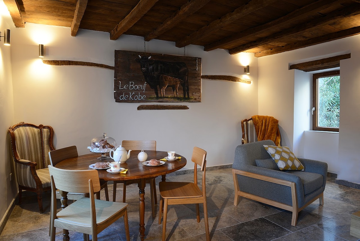 這個位於大自然中間的羊欄是一個和平的天堂,位於栗樹林和橄欖樹之間。 在室內,您會發現一個舒適溫馨的起居空間,在一樓有一間大臥室。 冬天享受燃木壁爐,夏天享受空調。 露臺上有一個正宗的石頭燒烤架,旁邊有水槽。 外面有一個麵包場等著您,還有一條天然河流可以遊泳。 距離海灘30分鐘路程。
