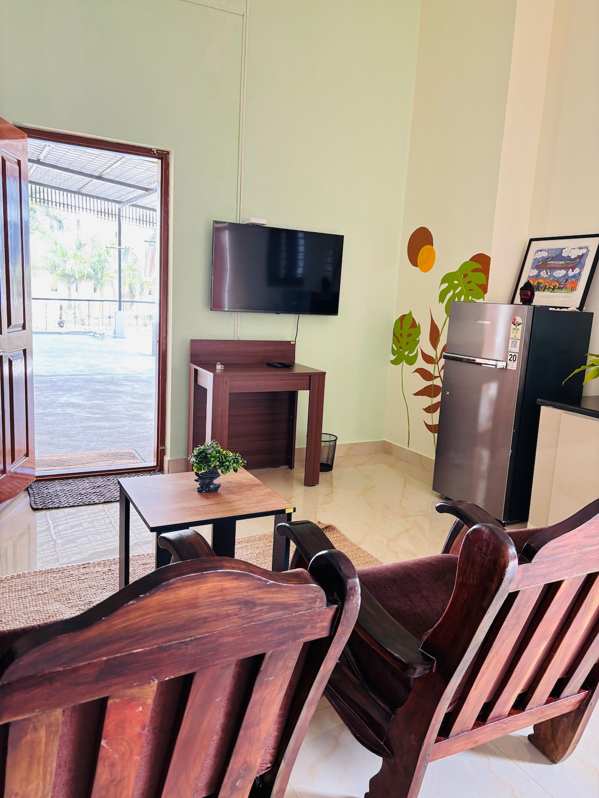 這間寬敞、乾淨且裝潢精美的一樓房屋,為參觀邁索爾提供舒適方便的基地。臥室配有加大雙人床、空調和附屬浴室/廁所、飯廳和廚房,客廳配有智慧電視、沙發+單人床和私人屋頂露臺。 WiFi 速度為 100 mbps。我們的房子前面有街頭停車位。