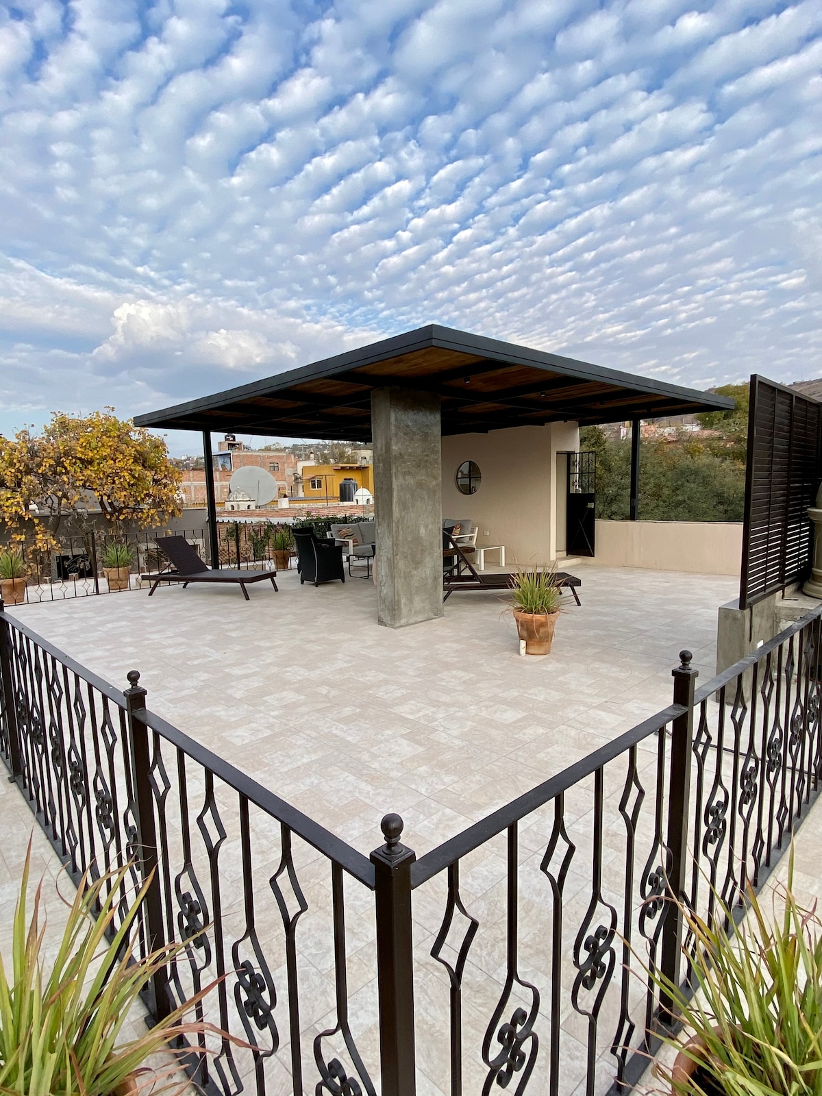 景觀和位置都很壯觀。直接位於華雷斯公園(Parque Juarez)上方,從Mirador瞭望台下來。 距離主廣場只有幾個街區。我們的房源位於另一個房源的後面和上方,讓您可以享受寧靜和私密的環境,同時欣賞聖米格爾市中心、教堂和遠處鄉村的壯麗全景。 這個物業的四層樓,可以清楚地定義空間,但又彼此連接,創造出一種寬敞的感覺,同時受益於周圍樹木和覆蓋著藤蔓的牆壁的茂密綠化。多個露臺和噴泉為乾淨明亮的室內裝潢奠定了放鬆的基調,讓人想起地中海。 主樓層有客廳、餐廳和設備齊全的廚房,配有全屋淨水系統,以及陽臺和帶套房浴室的客房。下方有一個私人花園,有一個工作室,為藝術創作提供完美的氛圍。 主臥室位於樓上,令人驚豔,寬敞開放。位於中央的加大雙人床面向景觀、法式門和陽臺。 套房浴室設有大淋浴間和天窗。 臥室外有一間套房辦公室,提供整套房源的網路和WiFi ,可俯瞰聖米格爾德阿連德第二歷史悠久的十七世紀聖十字教堂。 在主臥室正上方,您可以從日光露臺或舒適的大陰涼露臺欣賞聖米格爾最令人驚嘆的景色。 在屋頂酒吧放鬆身心,欣賞日落美景,享用日落雞尾酒或咖啡。 我會在您抵達前與您一起處理所有細節。 一旦抵達聖米格爾,我們的房屋經理Jose就在城裡,隨時可以提供服務。 我們的管家Esmeralda每週會在星期二、星期四和星期六來3次,通常在上午9點左右。