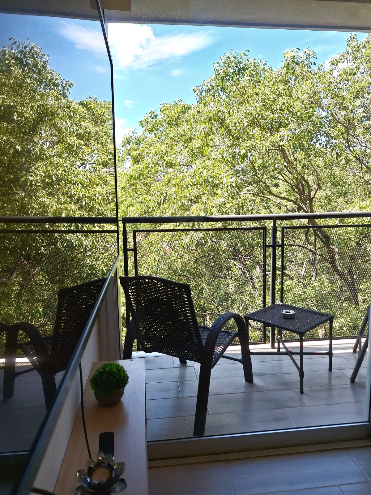 Monoambiente cálidamente decorado con baño privado, pequeño estar con sofá y comedor, placa de cocina, balcón propio. Edificio con guardia 24/7, estacionamiento bajo techo, rodeado de restaurantes, farmacia, tiendas de conveniencia, bares. Smart TV, jabón, toallas,ropa de cama, cocinita, ollas, microondas, A/C split, tendedero de ropa, heladera, cafetera, cubiertos, vasos, secador de pelo, enchufes para USB. Terraza con parrilla bajo pedido, con costo. Alojado en el corazón de Asunción.