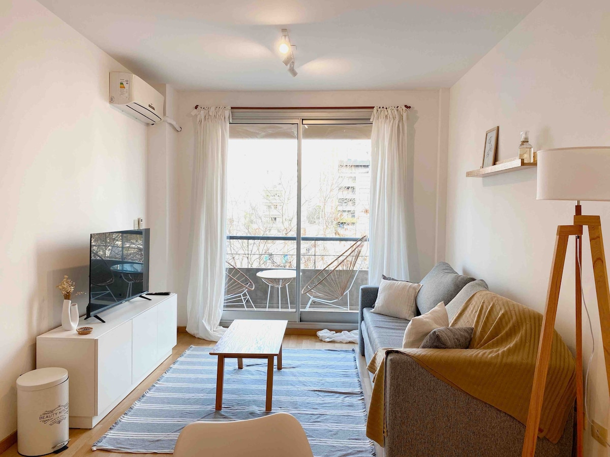 這是一個非常舒適、明亮的公寓,可容納4人,位於貝爾格拉諾社區。配有空調(冷/暖)、高速( 50 MB/s ) WiFi、配有Netflix和有線電視的全高清電視、設備齊全的廚房和浴室。 臥室配有一張大牀( 160 × 200釐米) ,客廳配有2張雙人牀。非常適合想在布宜諾斯艾利斯享受極佳住宿的家庭。