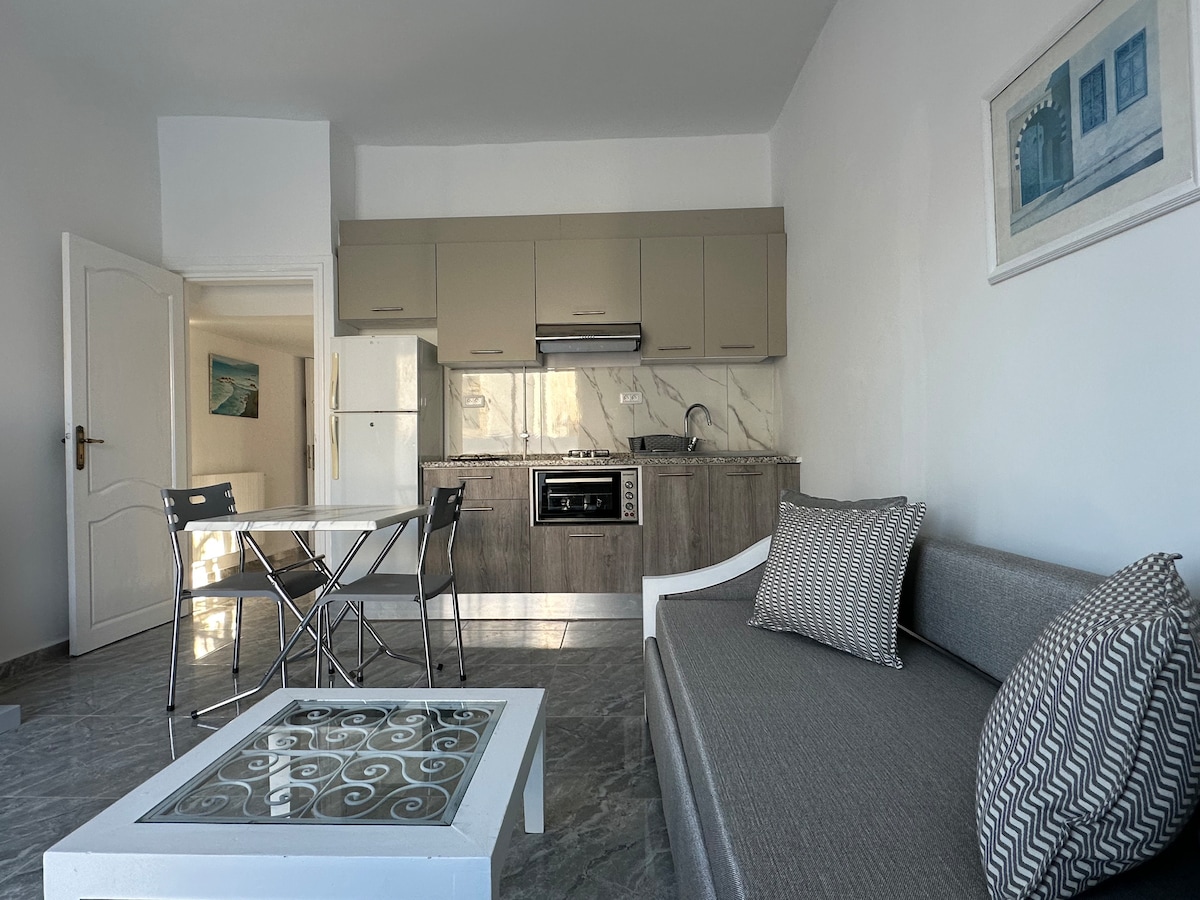哈馬梅特令人驚🏝嘆的海景公寓–舒適放鬆 🌊 歡迎來到您在Hammamet的天堂,這是一個面向大海的美麗公寓,非常適合與家人或朋友一起放鬆入住。 距離沙灘僅幾步之遙,即可欣賞壯麗景色和迷人的環境! 🏡 關於此房源: ✨ 2 間寬敞的房間 半遮蓬☀️的大露台,可在露天享用美食 客廳和露台可欣賞全🌊景海景
