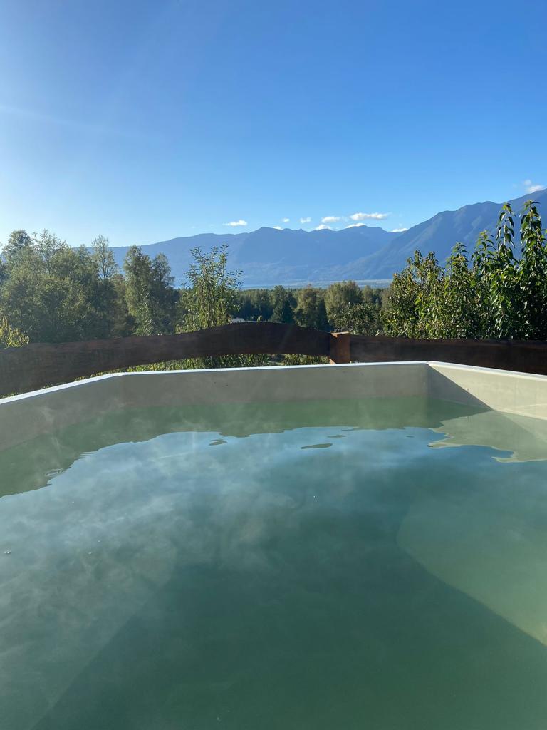 Somos Cabañas Vistas Pucón. El Domo cuenta con tinaja propia que se tempera automáticamente entre las 5pm y 9pm a una temperatura ideal (38°C) INCLUIDA EN EL PRECIO. AIRE ACONDICIONADO incluido solo calefacción a 20° Estamos en un entorno natural hermoso, con vista privilegiada al lago, montañas, al valle de Pucón y en la noche a un cielo estrellado maravilloso. Está ubicada a 7 Km. (8-10 min.) del centro de Pucón, muy cerca de otros lugares interesantes y atractivos.