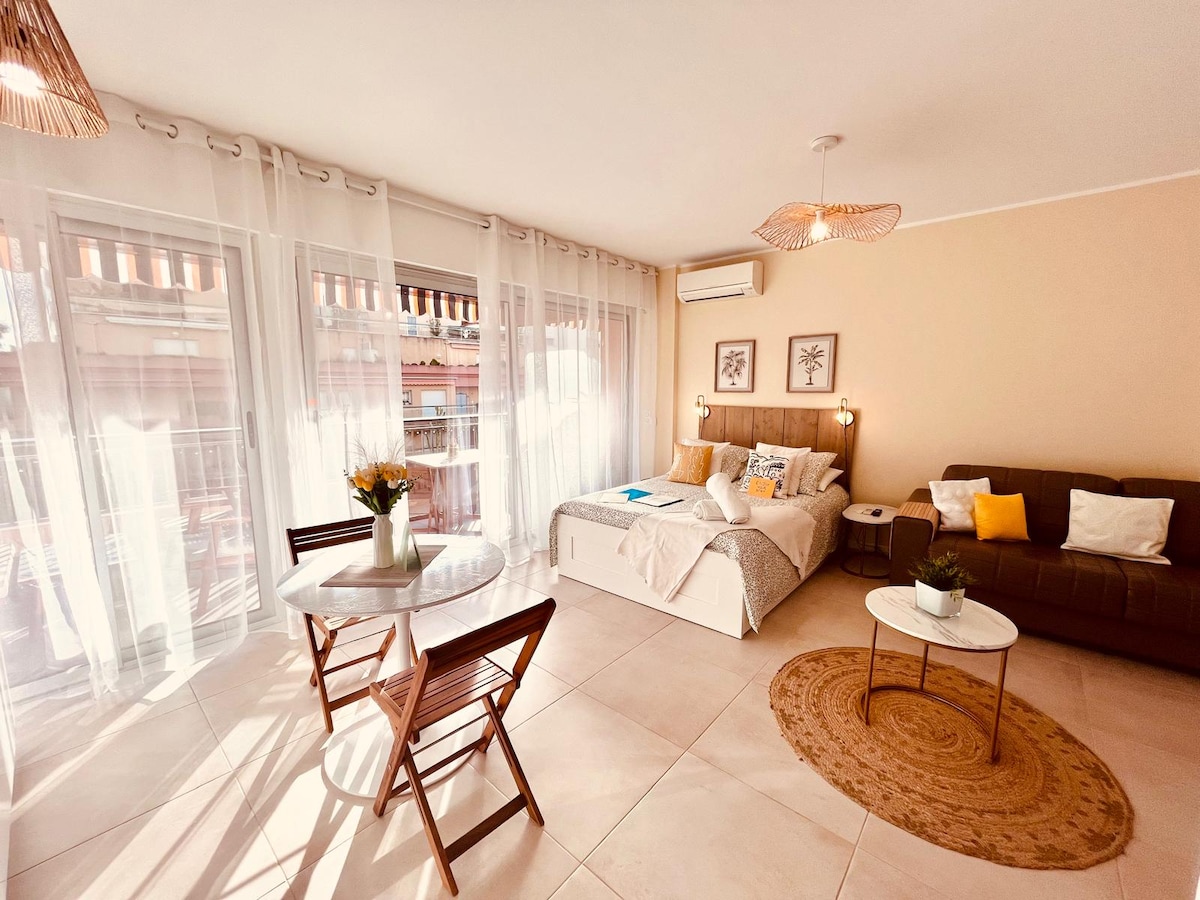 在這個位於尼斯市中心的中心位置,享受時尚的體驗! 我的公寓面積為35平方米,配有陽臺,步行10分鐘即可抵達港口和著名的Place du Pin廣場 步行1分鐘即可抵達Nice Riquier站,讓您在15分鐘內抵達摩納哥,或在另一個方向的戛納,戛納,義大利 附近有餐廳、麵包店和最可愛的咖啡館。 在古樸的單間公寓空間中享受美麗的全新空間,配有緊湊型廚房,可供3人舒適入住。