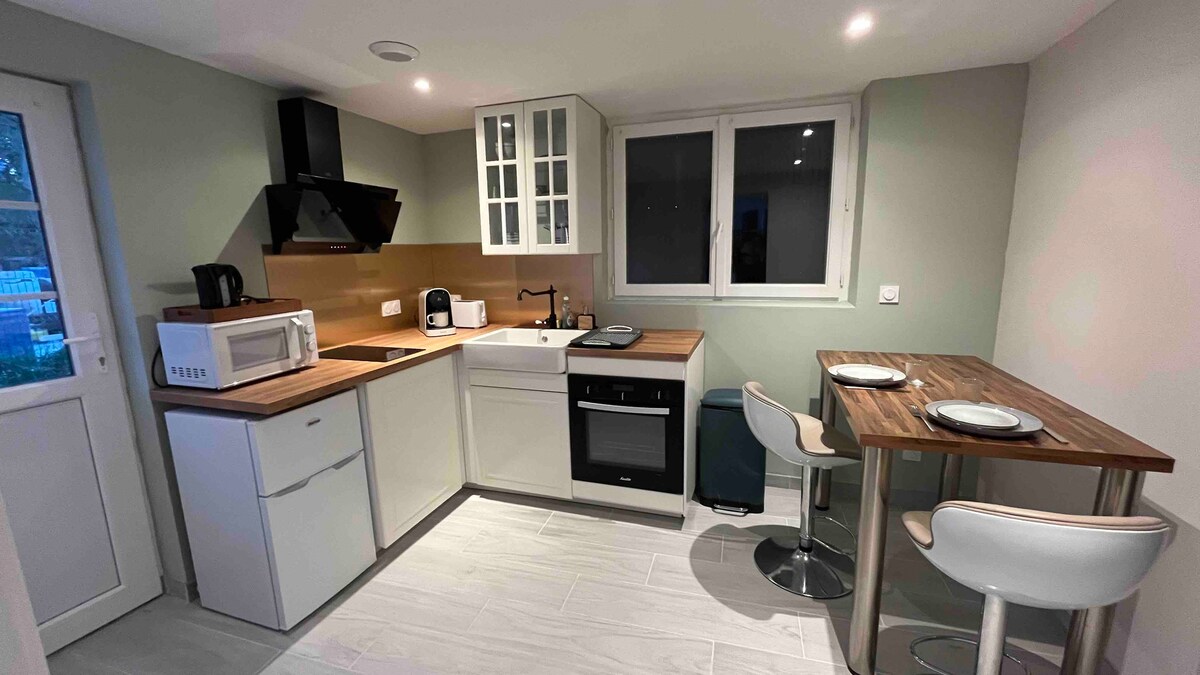 Studio à l'état neuf ( classé 3*), dans résidence récente et sécurisée avec stationnement gratuit, à proximité immédiate d 'un agréable lieu de détente ( parc naturel ombragé), et à mi-chemin entre le centre ville historique de Sens et la zone commerciale nord. Appartement très lumineux, bien exposé, agréable à vivre! Literie confortable, linge de lit et de toilette fournis. Tv 120cm HD, fibre optique, Netflix. Chauffage électrique à inertie douce pour un confort optimal!