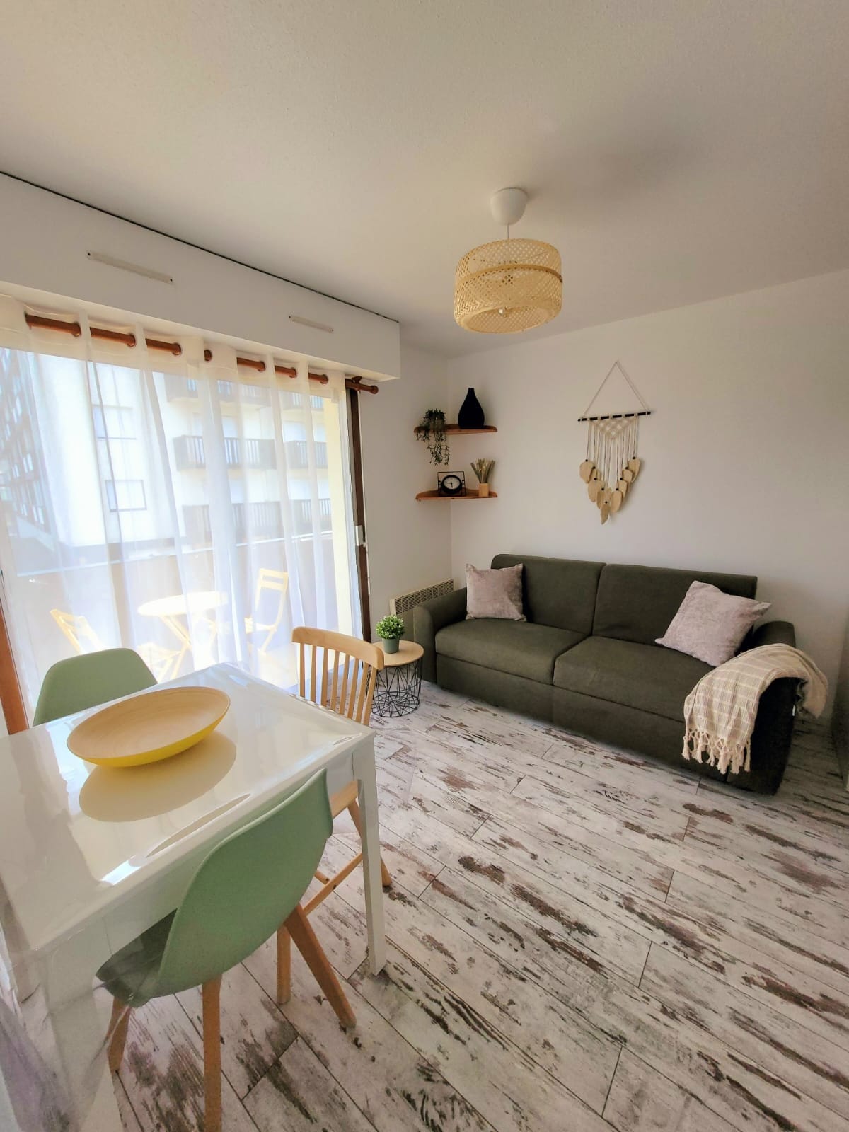 3 間房間 60 平方公尺 位於市中心,距離海灘 30 公尺,距離旅遊局 100 公尺。 客廳 26 平方公尺:80 公分電視、網路、DVD 播放機、沙發床、海景陽台(桌椅和躺椅) 廚房可俯瞰陽台景觀(烤箱、微波爐、冰箱、洗碗機、Nespresso 咖啡機、水壺、咖啡壺、烤麵包機) 臥室 1:兩張單人床,可通往客廳陽臺。 臥室 2:雙人床 - 陽台花園景觀。 客廳內有雙人沙發床。 獨立廁所。 浴室 洗衣機