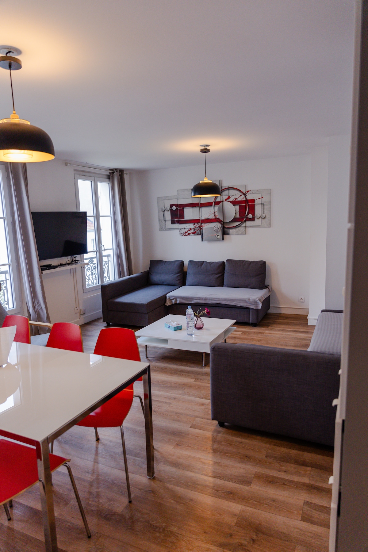 裝修精美的空調公寓,非常適合參觀巴黎(距離市中心15分鐘)或前往迪士尼樂園(35分鐘)。免費WiFi。非常靠近L1和RER A,位於一個很棒的區域。1間臥室和1間25平方公尺的客廳。 包括床單和家庭用品。 客廳: 2張雙人沙發床和1張單人椅床 臥室: 1張雙人床 抵達前和離開後可將行李箱留在大樓內。