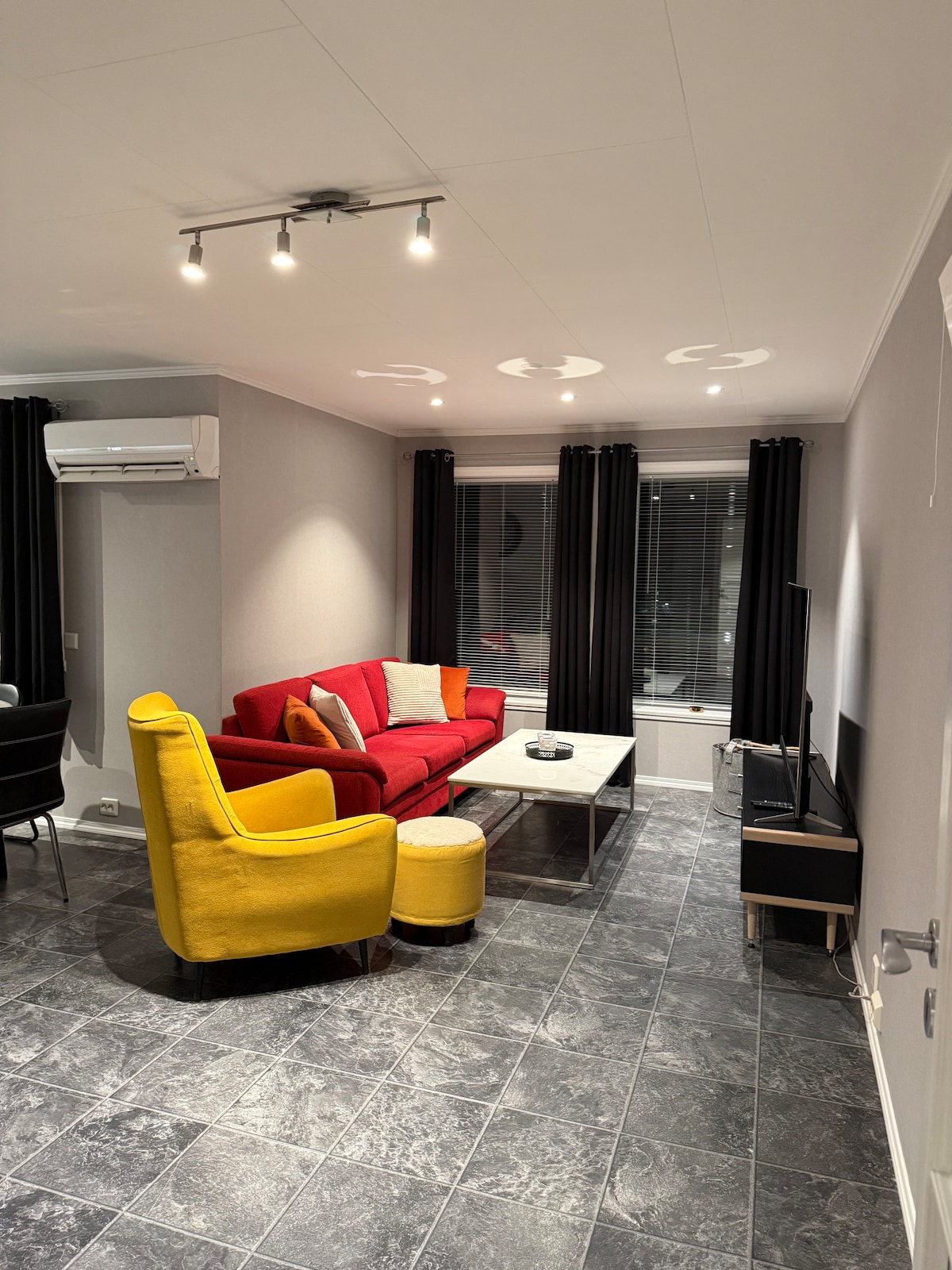 Sokkelleilighet mellom fjell og elv