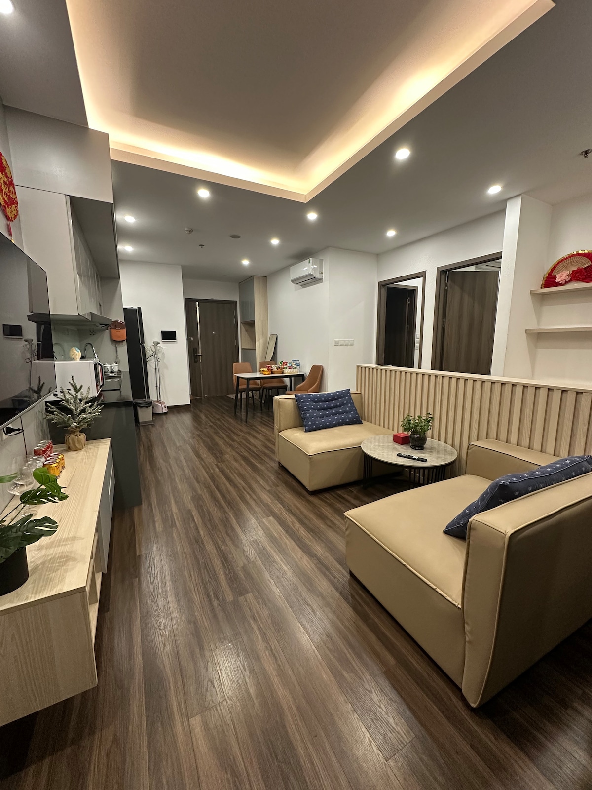Căn hộ phong cách Modern Organic với 2 phòng ngủ 2 vệ sinh mới 100% đầy đủ tiện nghi bao gồm: máy giặt sấy, phòng tắm, wifi miễn phí, nhà bếp, bàn ăn. - Đối diện siêu thị GO, thoả thích shopping mua sắm - Đối diện Nhà hàng Lạc Hồng (có voucher giảm giá) - Gần phòng trà ca nhạc Opus - nổi tiếng ở Hải Phòng Thời gian dự kiến bằng taxi - 10 phút đến sân bay Cát Bi - 10 phút đên Nhà hát lớn Hải Phòng - 15 phút đến Vin Wonder - 10 phút đến chợ Lương Văn Can - thiên đường ẩm thực