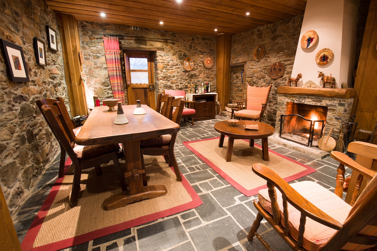一個修復的房子,配有您需要的所有舒適設施,讓您與家人和朋友一起度過美好的假期和/或聚會。 此房子位於河邊的舊廢棄村莊,有一個美麗的小海灘。 如果您喜歡與大自然接觸,這是理想的地方;您可以找到水獺、許多種類的鳥類等。 房子有兩間臥室、一間浴室、設備齊全的廚房和空調。 泳池與另一棟房子共用。 如有需要,可提供餐點。