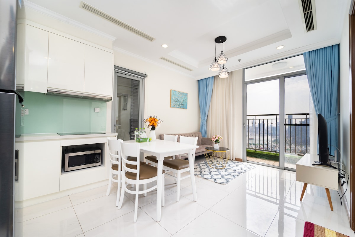 入住這間位處中心地段卻安靜的房源,讓自己的旅程輕鬆無負擔。 公寓位於Vinhomes中央公園,是現代奢華生活空間的理想居住地。 這間公寓位於地標4的12樓,靠近地標81-胡志明市最高的建築。 附近有很多便利商店、餐廳、咖啡廳,步行即可抵達。 大樓對面有一個購物中心Vincome Center,有許多品牌商店和美食廣場。