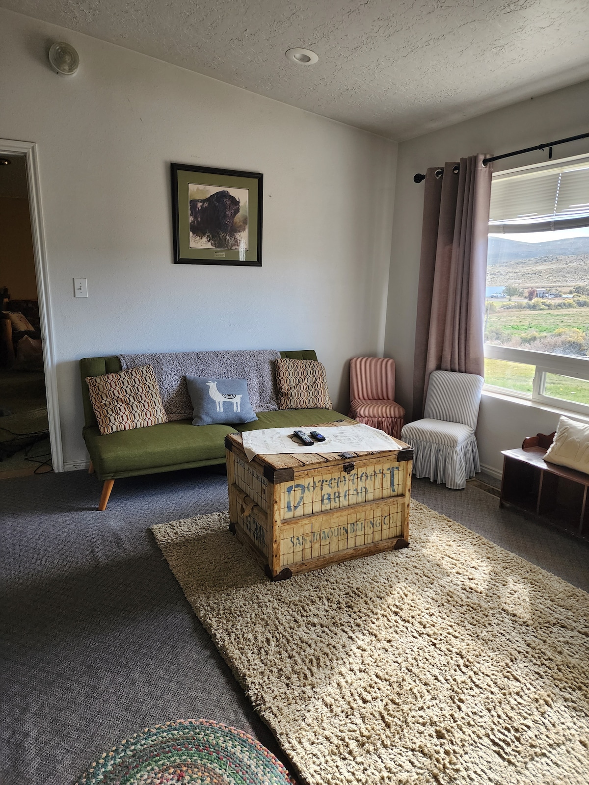 We hope you enjoy our space. We provide you with oatmeal and farm fresh eggs as the chickens allow. There is private entrance to a kitchen, living room, bedroom, and bathroom all private. We have area that if you need to park a truck and trailer for enjoying our mountains. We own a kennel on the property. This is a great place to stay and have your pet close for a minimal fee to go for a walk with you. We request that your pets stay in the kennel area to help keep cleaning costs down.