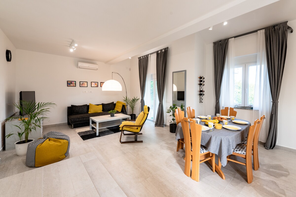 在這個舒適的住宿中與您的家人一起放鬆。Kristijan 公寓位於一條安靜的街道上。雖然遠離海灘,但我們提供在游泳池中娛樂的機會、大量的兒童遊戲空間,以及享受烤肉和靠近大自然的步行或騎自行車。我的家人也住在同一棟建築物中,我們將隨時為您服務。