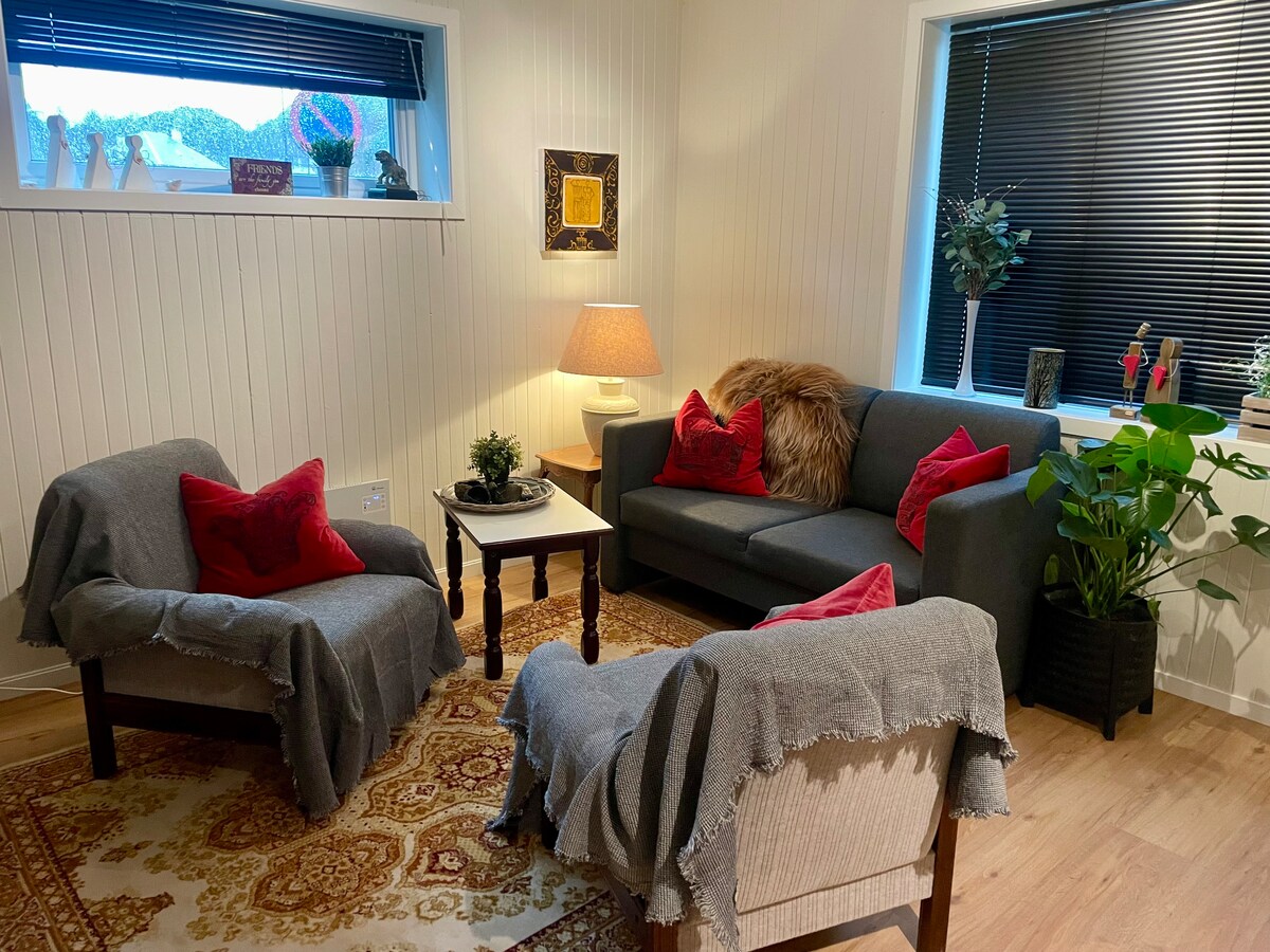 A welcoming guesthouse with three bedrooms, two living rooms and capacity for up to 12 guests. The house offers a fully equipped kitchen, bathroom, dining area, fireplace and Wi-Fi. Loft with bedrooms and living room with TV. Outside a spacious terrace, hot tub, grill area, big lawn, trampoline and beautiful views. Perfect for both families and groups all year round. There is also available toilet next door. Washing machine (NOK 100 per load). Electric car charging is NOK 200 per charge.