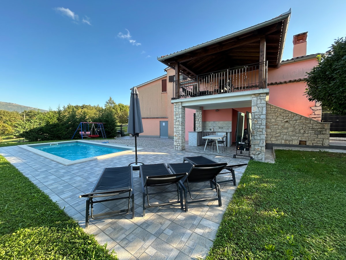 中世紀舊城布澤特(Buzet)坐落在山頂上,坐落在最長的伊斯特蘭河(Istrian River Mirna)的肥沃山谷上方,從大型Skadanjs的露臺上可以看到。 Skadanj位於Krbavč 'i山脈高原附近的一個小村莊。以前, Skadanj是一間由我們祖父母建造的舊穀倉,位於村莊末端,四周環繞著綠色區域。 2017年進行了翻修。房子外面是一個美麗的遊泳池,配有木製日光甲板。
