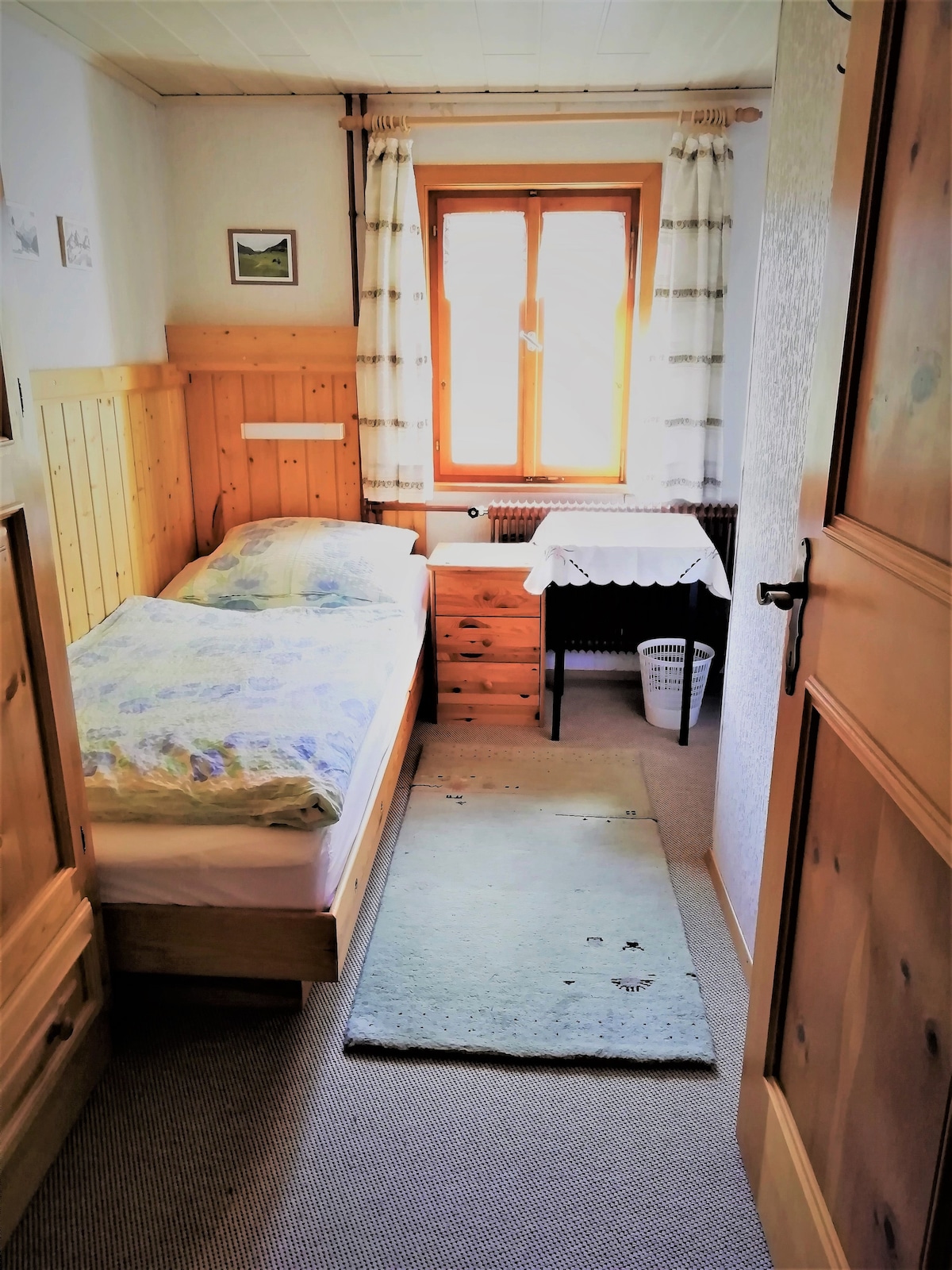 Schönes, ruhig und zentral gelegenes Einzelzimmer in Gästepension in Gaschurn, inklusive Bad und Toilette. 10 Gehminuten bis zum Dorf und zur Liftstation.