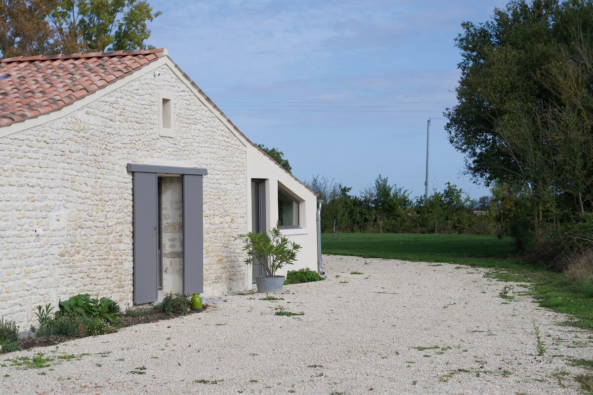 Charmant studio indépendant, situé dans la continuité de notre habitation, avec petit espace extérieur et stationnement privé. Aménagé avec soin, amour et souci du détail, nous espérons qu’il vous offrira une expérience agréable ✨ Nichée dans un quartier calme, cette location est idéale pour se reposer tout en profitant des plages (à 20 min), de la Rochelle, du Marais Poitevin, du Puy du Fou, des Machines de l’île à Nantes, du Futuroscope... Commodités et commerces à proximité dans le village.