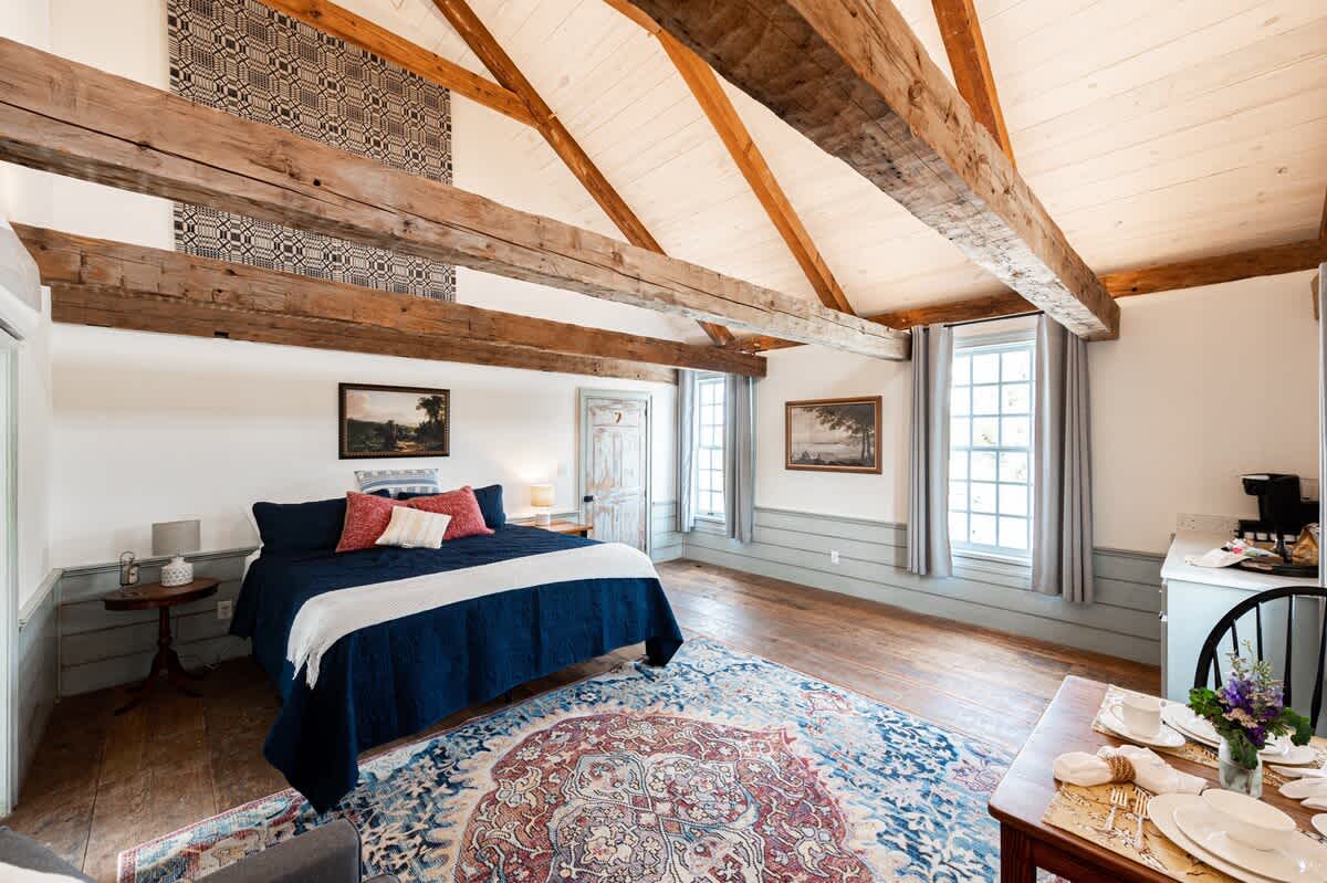 這間歷史悠久的莫霍克谷旅館(Mohawk Valley Inn)樓上套房配有加大雙人床、咖啡站和迷你冰箱、小型餐具組和全套衛浴,配有步入式淋浴間和浸泡浴缸。所有房客還可以使用小廚房和樓上休息區。 旅館坐落在Homestead Heritage Craft Village中,附近有餐廳、商店和各種探險活動。 來放鬆一下,在歷史中度過下一個假期。