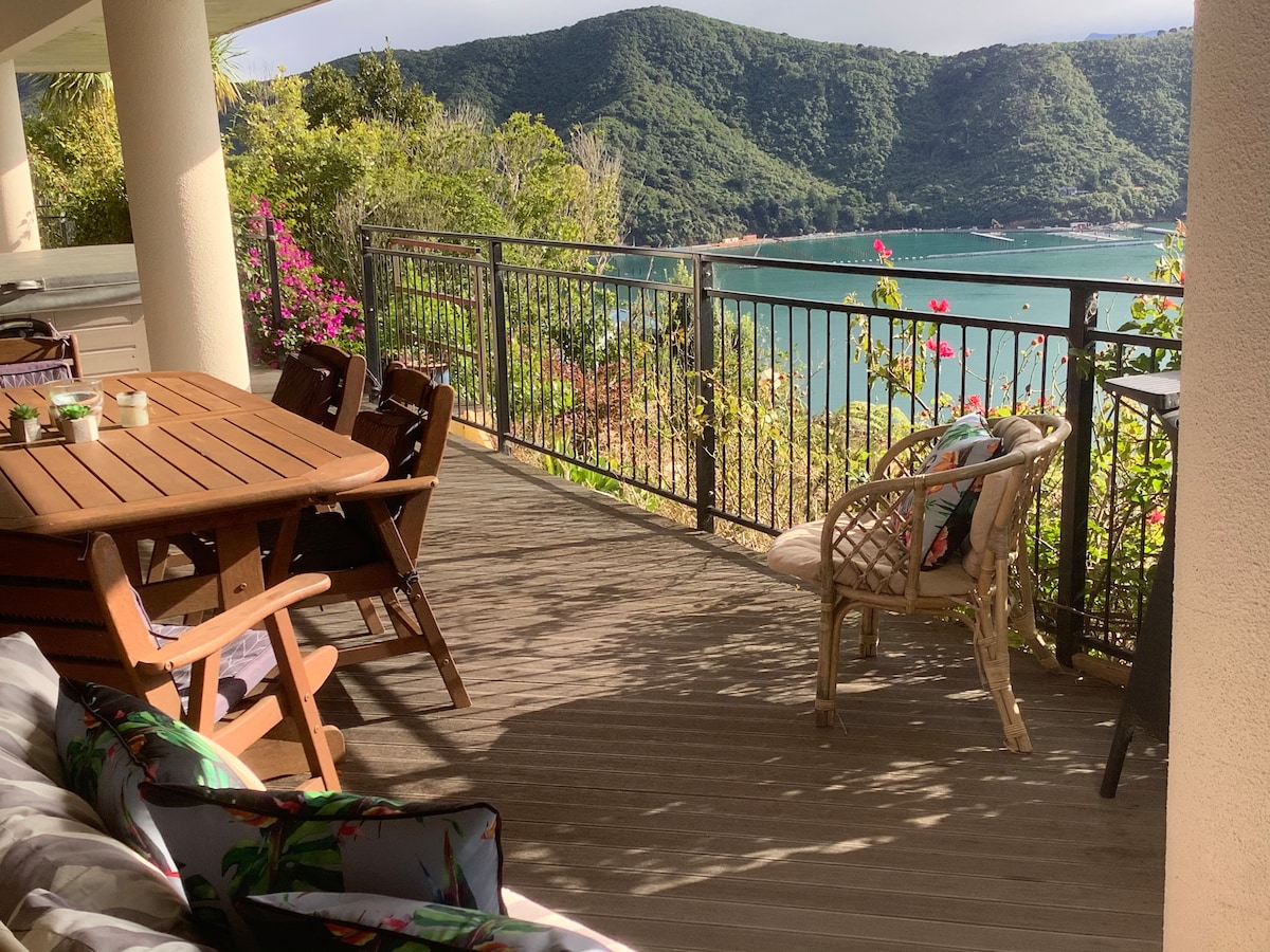 絕對的海濱!我們非常獨特、半獨立的樓下客用套房位於風景如畫的Marlborough Sounds海濱。 距離Picton僅10分鐘車程,火車、巴士或渡輪將您連接到南島或北島的門戶。 浸泡在水療池中,在露臺上放鬆身心,享用一杯葡萄酒,使用皮艇或槳板,或在距離套房幾公尺處放置釣竿。獨特的位置就在美麗的Marlborough Sounds的水邊。