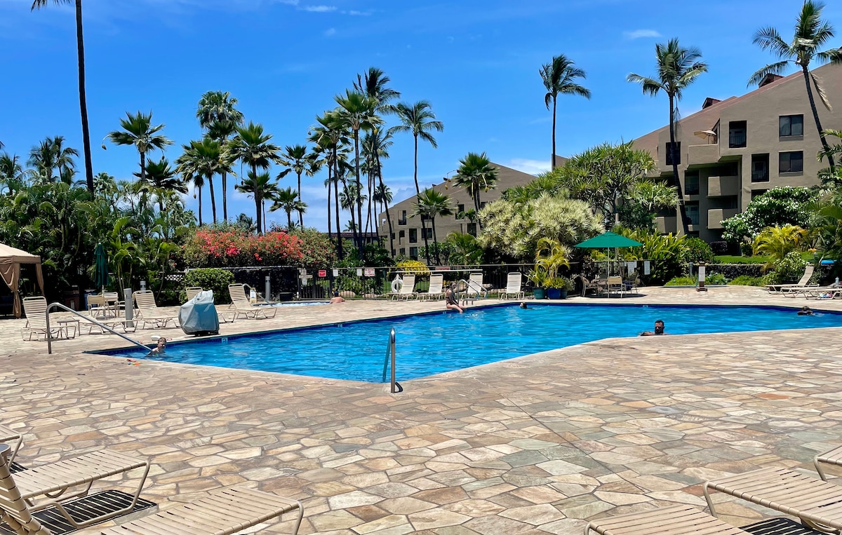 我們位於Kamaole Sands ( 3樓2樓)的1BR、2BA OV公寓# 2-303 ,配有設備齊全的廚房、洗衣機和烘乾機、客廳的高清電視和BR的第2臺電視。 臥室配有加大雙人牀,客廳配有一張標準雙人牀。大型涼臺可俯瞰泳池和噴泉池。 度假村有大型泳池、2間噴射水療中心、兒童泳池、4個免費網球場、瓦斯燒烤架、健身房、活動中心、免費停車位和免費WiFi。Kamaole Beach III就在街對面。步行即可抵達餐廳。