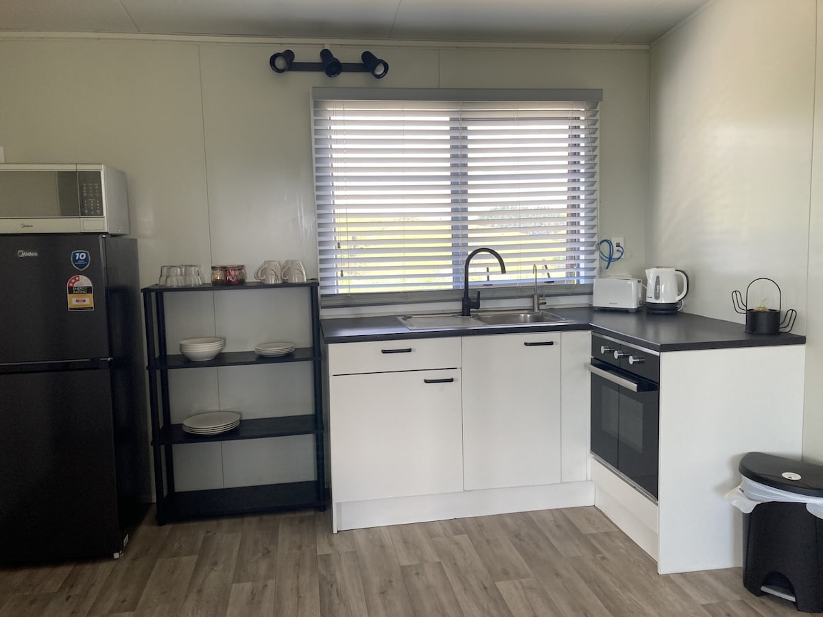 這間現代度假屋坐落在Te Kuiti鎮郊區的山上(距離懷托莫洞穴不到20分鐘),擁有2間臥室、休息室/用餐區域、帶淋浴間和浴缸的浴室以及功能齊全的廚房。 享受寬敞的草坪、鳥類、網球場和泳池(夏季)獨立住宿。帳篷地點可供大型團體使用。歡迎詢問 您友好的房東; Shaina、Thomas和他們的3個孩子;歡迎您分享這片天堂。