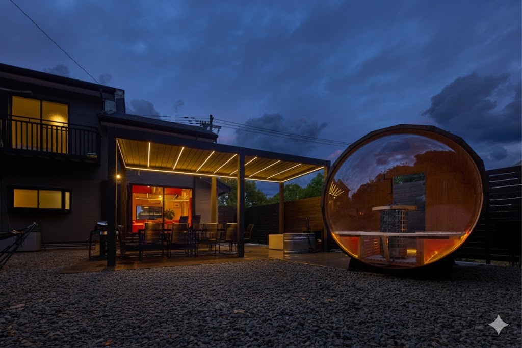 本格サウナと屋外ジャグジーを完備した、最大14名様まで宿泊可能な完全一棟貸切ヴィラ「さゆらぎヴィラ」です。 ■ 観光地の利便性と圧倒的な静寂 白良浜まで車で5分、主要観光スポットへも10分圏内とアクセス抜群です。周辺に民家がない独立した環境に位置しているため、3世代旅行やグループでも、喧騒を離れて圧倒的なプライバシーの中で過ごせます。 ■ 当施設の自慢 • 究極のサウナ体験: パノラマバレルサウナとチラー完備の冷水風呂(15度前後)。 • 星空ジャグジーとテラス: ライトアップが美しい屋外ジャグジーと、全天候型BBQスペース。 • 家事ストレスからの解放: 最新ガス乾燥機「乾太くん」(9キロ)を導入。大量のタオルや水着も爆速で乾き、滞在時間を無駄にしません。 ■ お部屋の構成 独立した寝室を4部屋ご用意。3〜4ファミリーでの滞在でもプライバシーを保ちながら、吹き抜けの開放的なLDKでゆったりと団らんいただけます。 ■ こだわりの音響システム リビング四隅にBOSEスピーカーとサンスイ製アンプを設置しています。Bluetoothでお好みの音楽を流してお楽しみください。