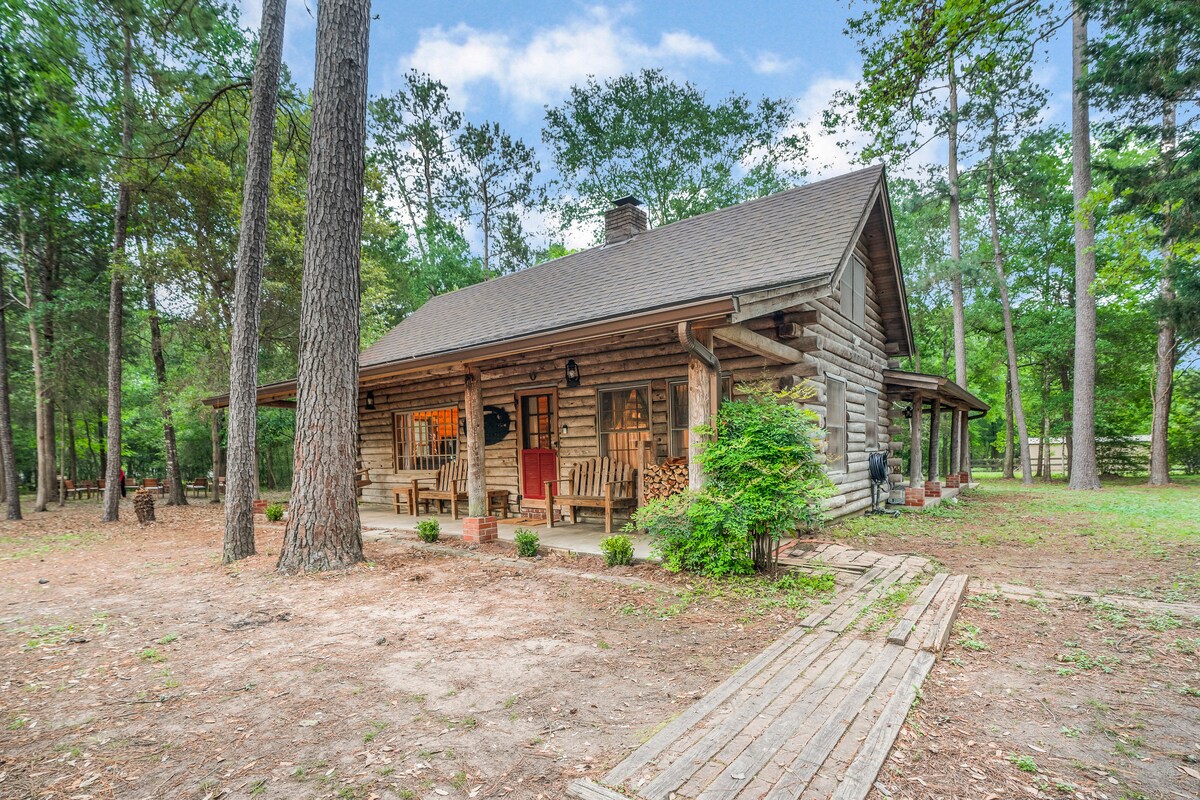 在森林中享受獨特的1700平方英尺德州主題木屋!這個1.5階建的房源位於一個小型家庭農場,有三間臥室和兩間衛浴,配有開放式客廳、用餐區和廚房。 在星空下烤棉花糖、在火坑上烤漢堡、玩馬蹄或玉米洞、與我們的山羊一起領導自己的瑜伽、從雞肉中採集雞蛋、在吊牀上放鬆身心、玩系帶球、在樹林中漫步或在唱片播放器上跳舞到經典的德州國家。