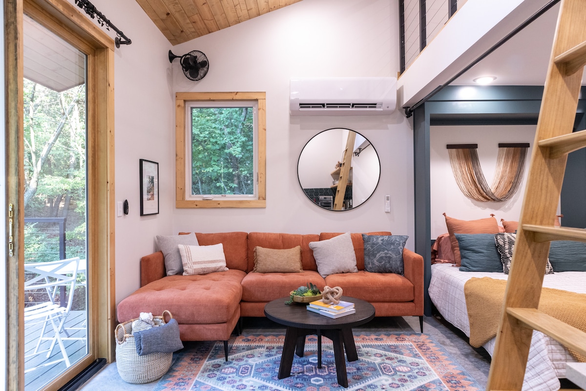 歡迎來到Pedal and Perch ,這是一個定制設計和建造的附屬住宅小屋,距離阿肯色州本頓維市中心、沃爾瑪總部和數英里令人難以置信的山地自行車道僅幾分鐘路程。享受寧靜的環境,讓您置身於樹木之中,讓您感覺像是住在自己的樹屋中。小屋設有定制廚房、一間浴室、閣樓上的雙人床、主樓層的拉出式沙發,以及您自己的戶外浴缸,可俯瞰下方的山谷。