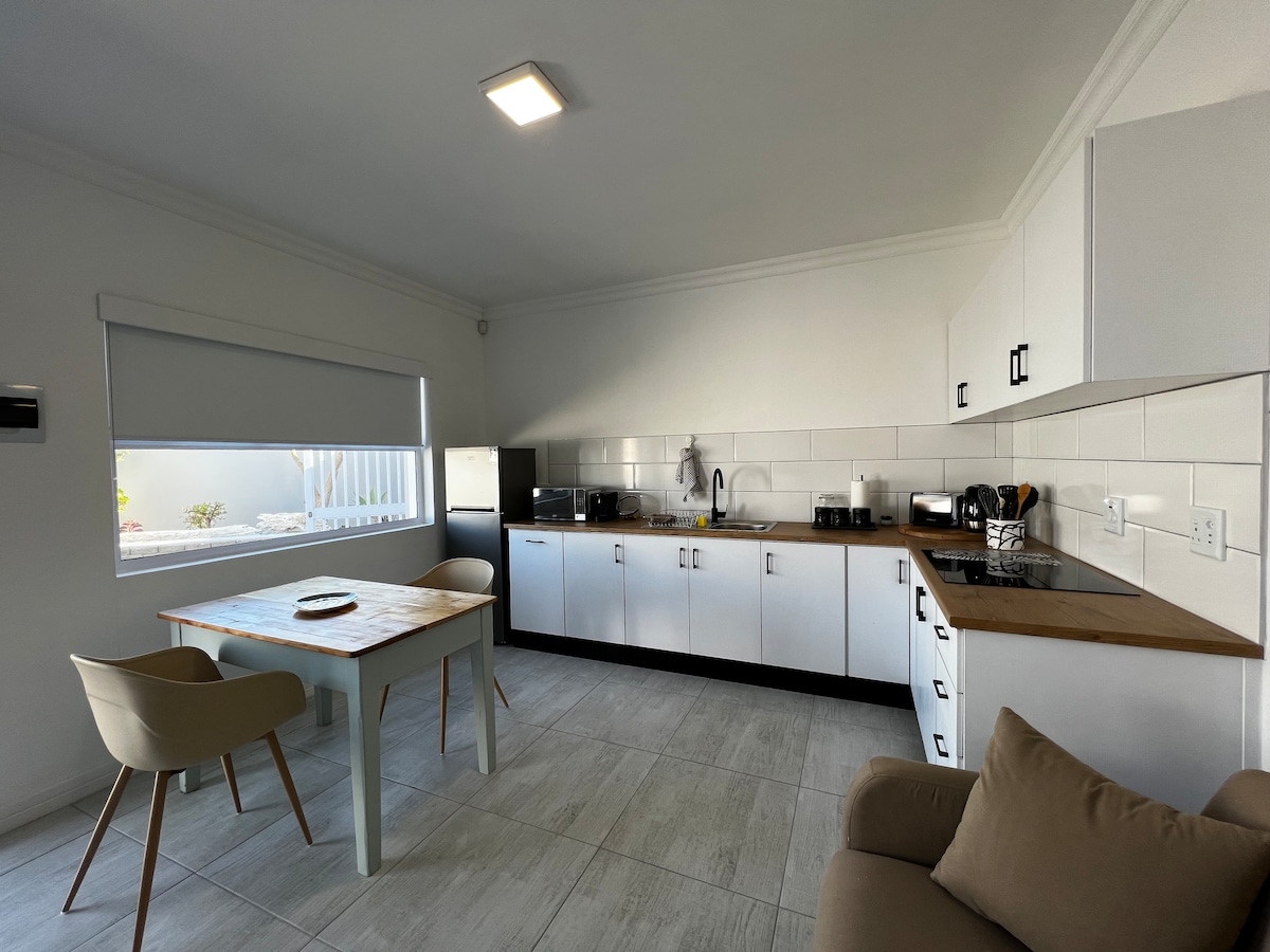 令人驚嘆的海景和日落。 位於Langstrand的海濱閣樓,距離斯瓦科普蒙德(Swakopmund)和沃爾維斯灣(Walvis Bay)15公里。納米布沙丘在附近,公寓位於海灘上。私人擁有,全自助式1間臥室公寓,獨立入口和安全的停車位。套房浴室和開放式休息室、餐廳和學習區域。提供DSTV和Wi-Fi。設備精良的廚房,配有爐具、微波爐、冰箱和洗衣機。非常適合情侶和企業人士。