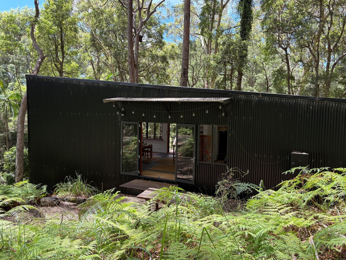 您的住宿是一個新改造的貨運集裝箱,完全自備,附有一個大型遮蓋所有天氣甲板區域。 The Getaway Box坐落在距離拜倫灣中心約6公裏的亞熱帶雨林花園中,私密而安靜。 距離海灘、餐廳和商店僅5分鐘車程。 享受兩個世界的最佳時光--沉浸在遠離喧囂的自然環境中,很難相信您距離拜倫的樂趣和景點只有幾分鐘的路程。