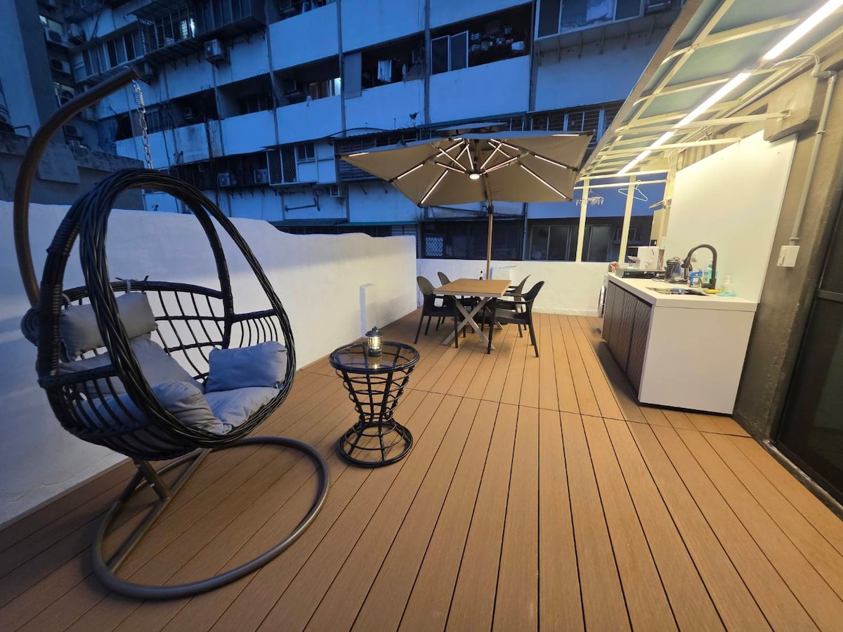 私人空中露台/戶外桌椅/超大料理台/ 太陽能傘/西門町商圈/頂樓套房/夜景 西門站步行600公尺