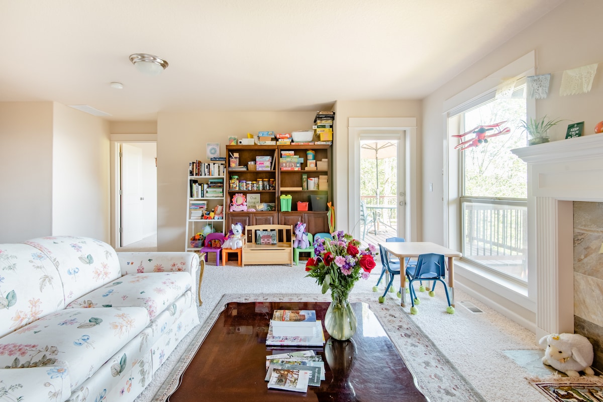 Our cozy family-friendly home sits in the NW Portland Hills - one of the safest parts of PDX - central to many Portland attractions: ✅ Minutes from the Forest Park trails ✅ Nike and Intel campuses nearby ✅ 10-minute drive to Downtown Portland (8 miles away) Best of all we are: 👨👨👦👦 Ready for families with children, 👨🏻💻 great for team retreats, 👴🏻 and everything in between! 🧸 Our centerpiece is our yoga friendly deck and our common room - covered with books and board games.