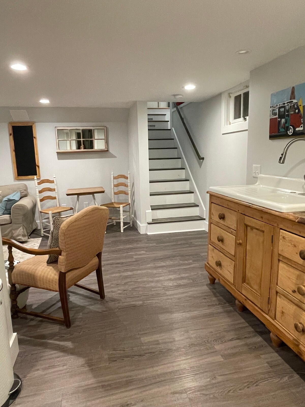 這個舒適的空間非常私密、舒適和新設計。 這是我們房源的完工地下室,因此由業主使用,但提供獨立的外部入口,以便房客決定是否願意與我們見面。 我們距離Narragansett鎮海灘約一英裏,距離自行車道和公共網球場和地鐵場僅幾步之遙,步行即可抵達城鎮、餐廳和商店。 開車20分鐘即可抵達紐波特。 快來成為我們的房客吧!