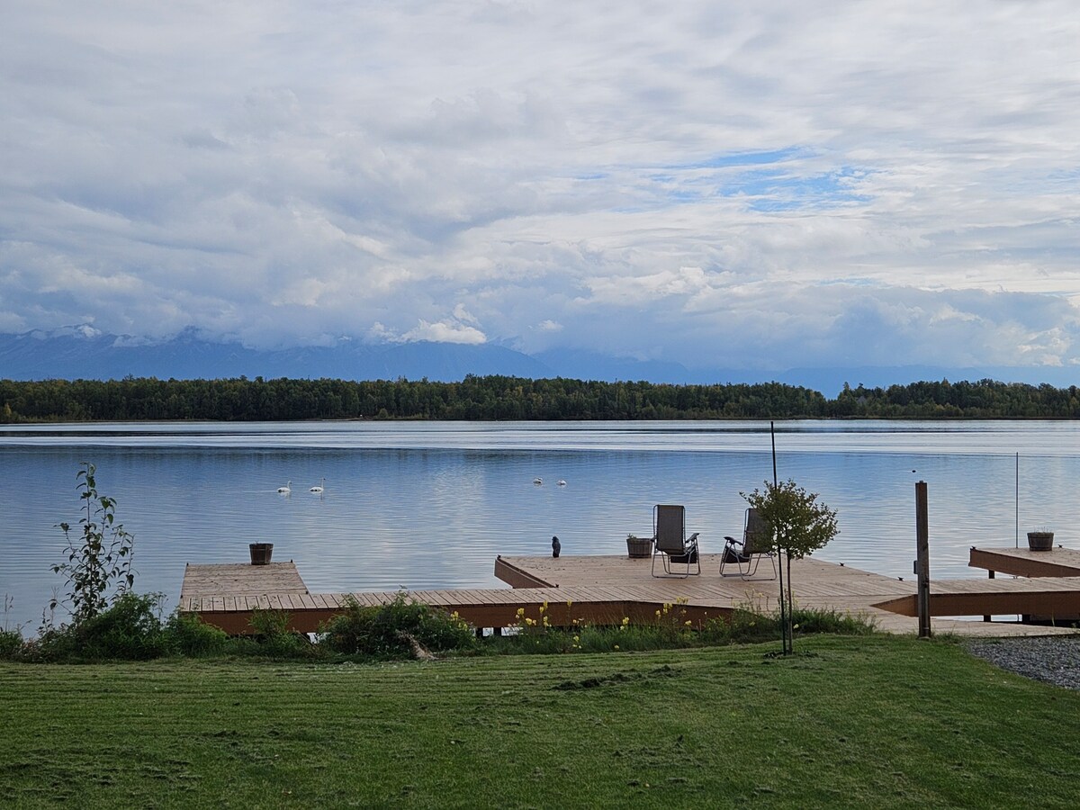 帶上您的登山靴、游泳鰭或電腦!我們周圍有Gooding湖的Talkeetna和Chugach山脈;這個中心位置位於Palmer和Wasilla之間的Trunk Rd北部,靠近Hatcher Pass和Matanuska冰川。這個安靜的度假勝地有5G、全功能廚房、洗衣房,非常適合在阿拉斯加讓自己清爽。古丁湖有一個小型沙灘和浮動飛機通道。獨木舟和皮艇可免費使用。 房客必須走上一整段樓梯。
