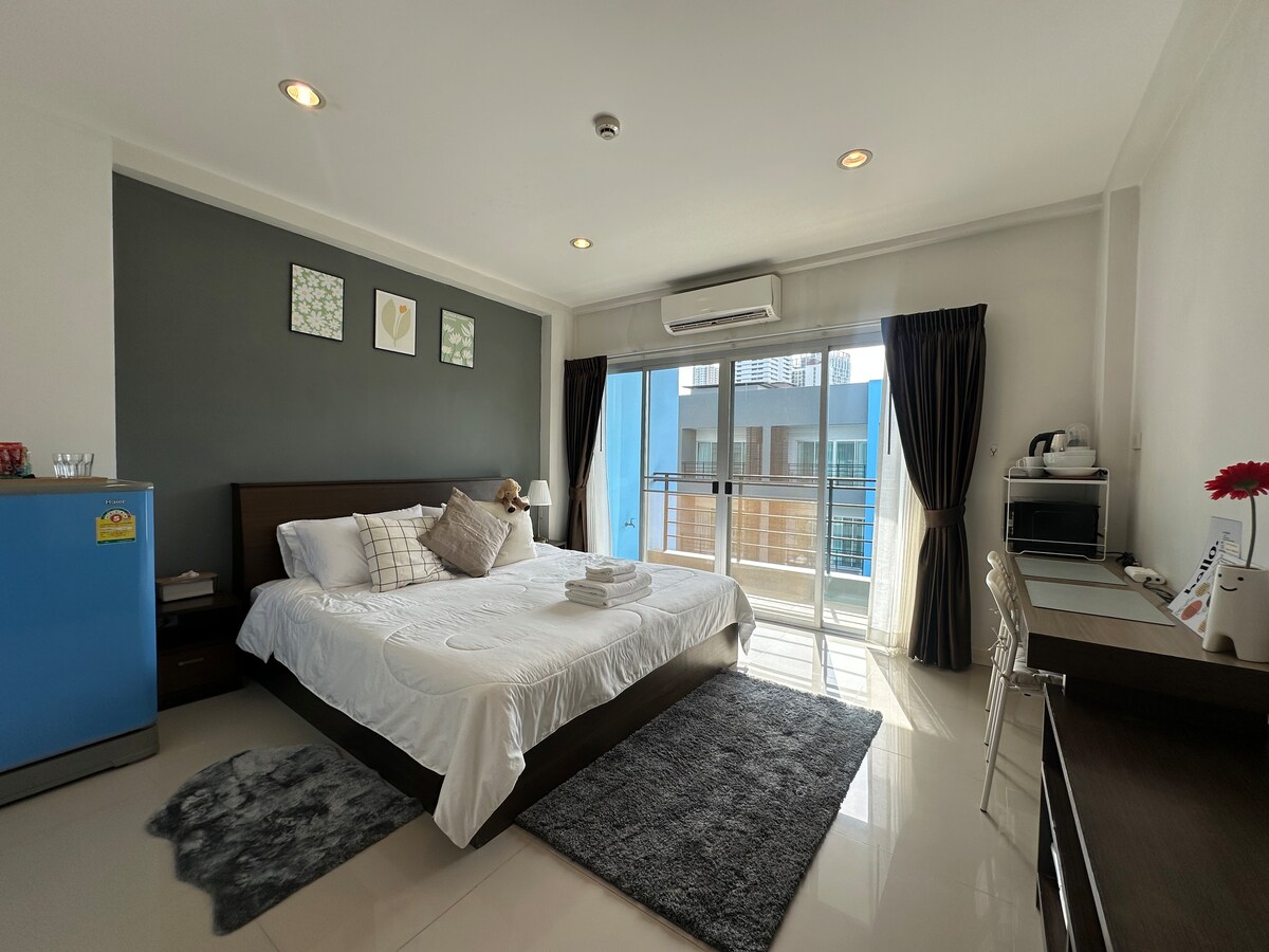 This cool, clean and comfortable queen size deluxe studio is the perfect place to come back in after a hot day of exploring the best that Bangkok has to offer. This bright studio has a queen size bed, en-suite bathroom, A/C, free wifi and other amenities. Currently our neighbors are doi g some construction on their house during the day.