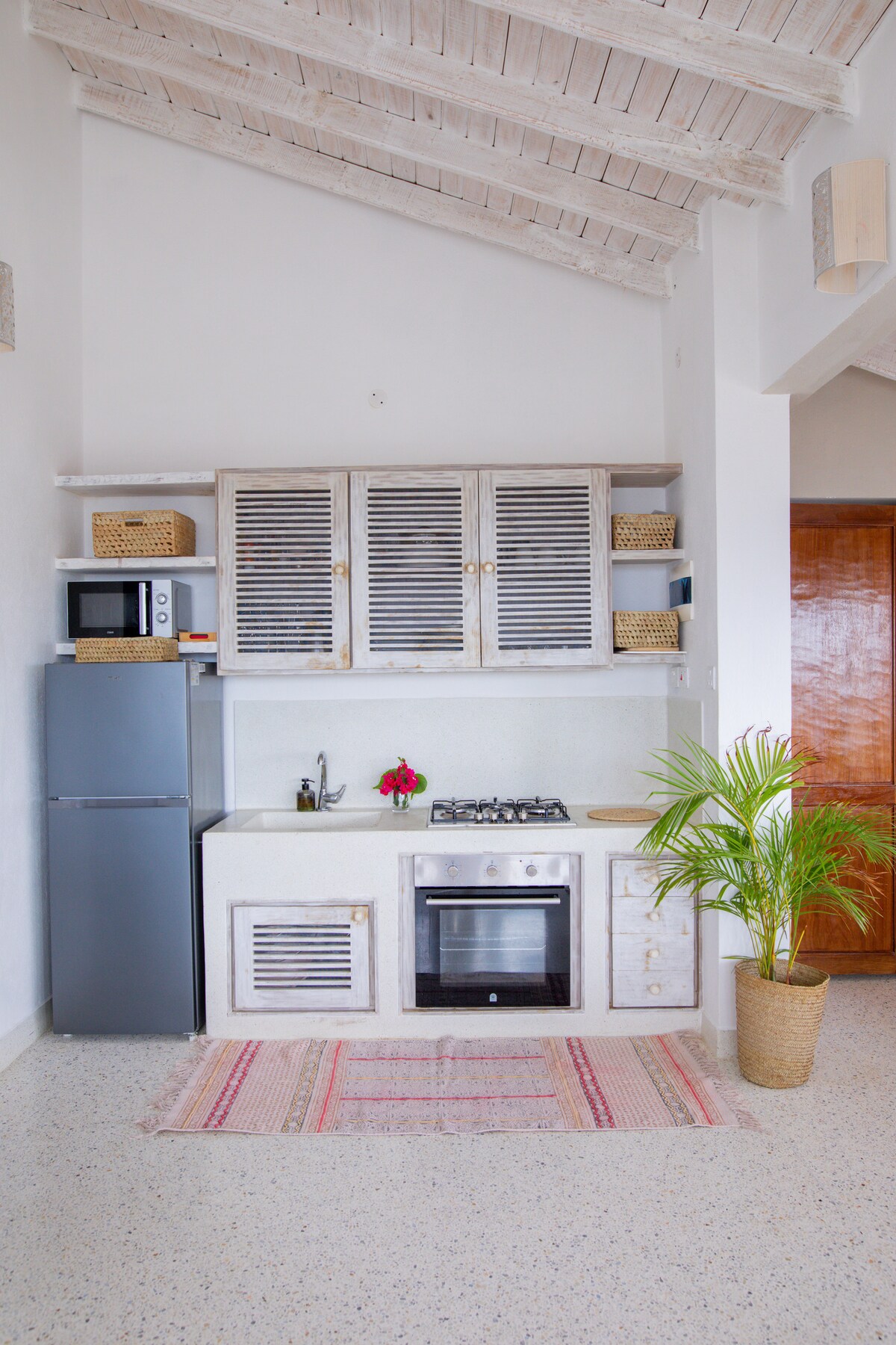 Newly renovated Bali-style serviced villa just a 15-minute walk to Watamu’s white-sand beach. Bright open-concept kitchen and living area with large sliding doors for fresh coastal breezes. Air-conditioned bedrooms, ceiling fans, and access to a shared swimming pool with our sister villa. For larger groups, both villas can be booked together. A backup generator supports only lighting during power outages. Located in a peaceful, secure neighborhood near top restaurants and attractions.