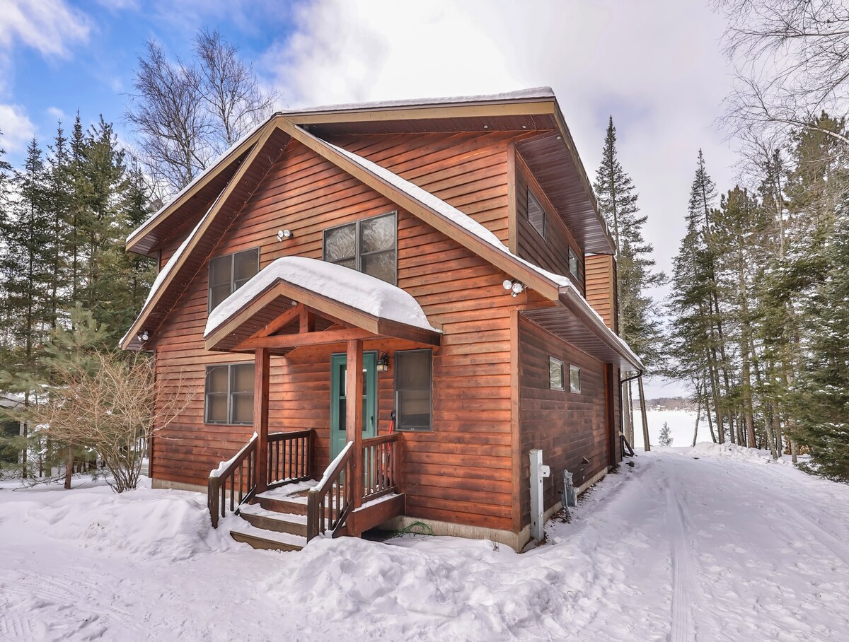 在我們的全新現代建築中找到您在遠處的Northwoods的空間,在私人湖泊上提供一個寧靜的度假勝地。距離鷹河(Eagle River)僅15分鐘路程。迷失在大自然的壯麗景色中,我們提供共用的槳板、皮艇和獨木舟。我們的地下室提供遊戲室,配有飛鏢、遊戲機等!一年四季都能欣賞北雙子湖(North Twin Lake的壯麗景色,並享受Starlink網路的便利,完美融合荒野度假和現代舒適。