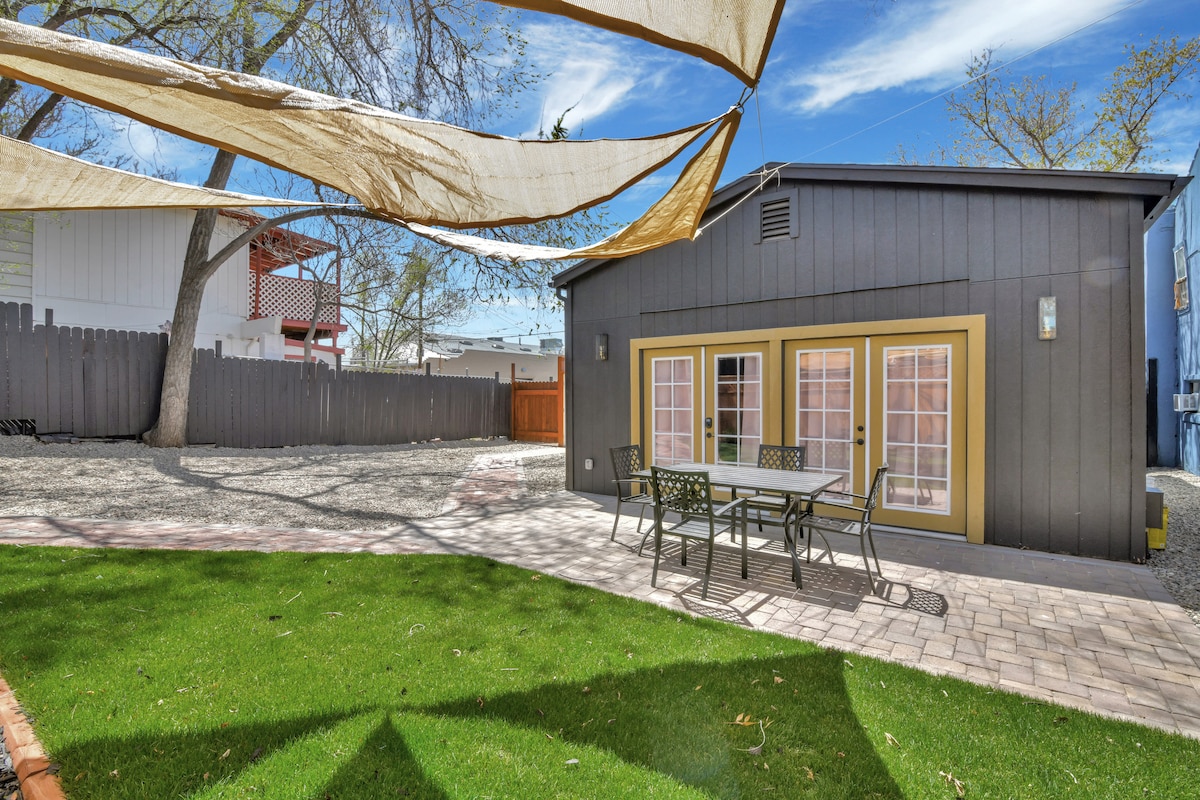 享受獨特的房源,步行即可抵達市中心。 這間美麗的獨立房屋設有按摩浴池、前後休息區、烤肉區和前院瀑布/池塘 浴室包括一個日本智能馬桶和很棒的雙淋浴塔。 現代化的廚房備有全新電器和基本烹飪用具。 立即享受這個安靜的度假勝地! 注意:由於樓梯下降/高度變化,此房源不適合老年人入住。