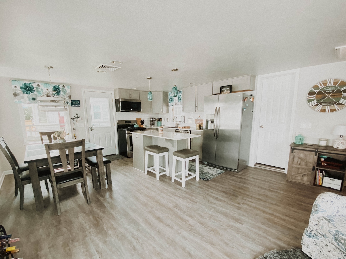 這裡有私人巖石海灘和美麗的日落! 這裡是與家人、幾位朋友、重要他人或獨自安靜度假的好去處。 在火坑旁欣賞令人驚嘆的日落,同時享用s 'mores。 有足夠的院子空間可供活動和海灘遊泳、漂浮、劃獨木舟和扔巖石。 當您正在尋找安靜的度假勝地時,這也是冬天參觀的好地方!