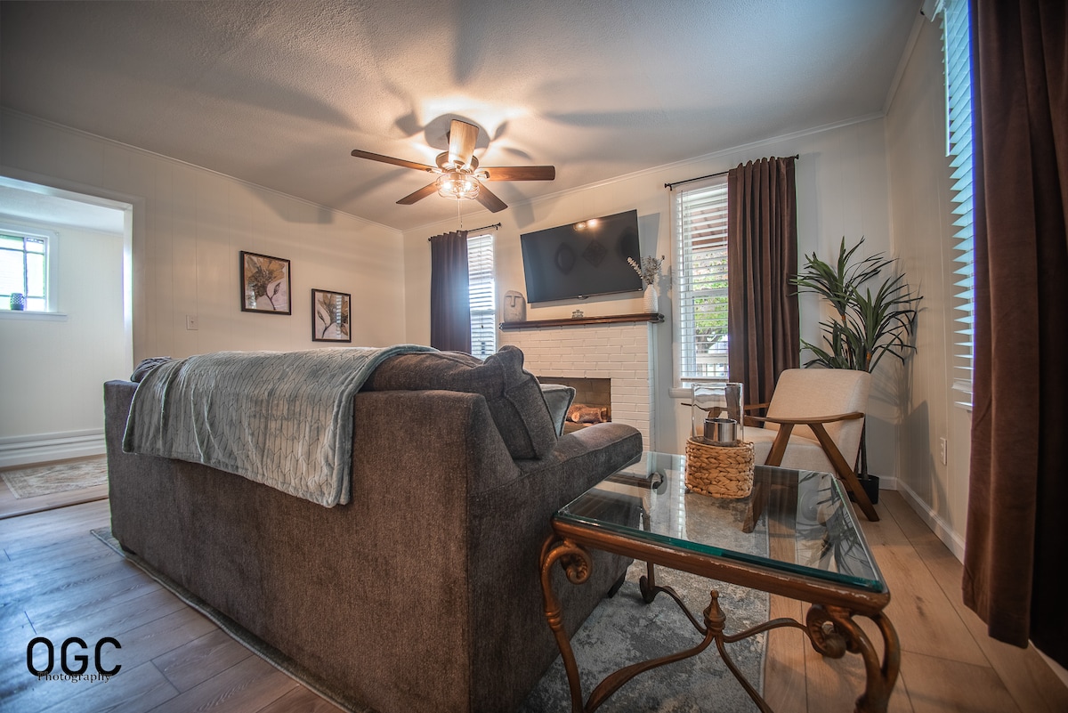 新舊融合,和諧平衡。 一個既尊重歷史、又提供現代舒適感的空間。 ✨新電器、照明、窗戶、暖通空調、洗衣機/乾衣機 ✨2臺電視,其中包括一臺 55 吋的便攜式電視——非常適合玩電動遊戲 ✨原始地板、浴缸、壁爐、裝飾;大門廊 ✨毗鄰餐廳、雜貨店和便利商店 ✨步行1英裏即可抵達競技場、購物、電影、河濱和公園 距離馬歇爾✨7分鐘,距離醫院不到10分鐘 每隻寵物每晚適合✨狗狗入住;最多2隻狗 💡用餐區域可以用作第三間臥室