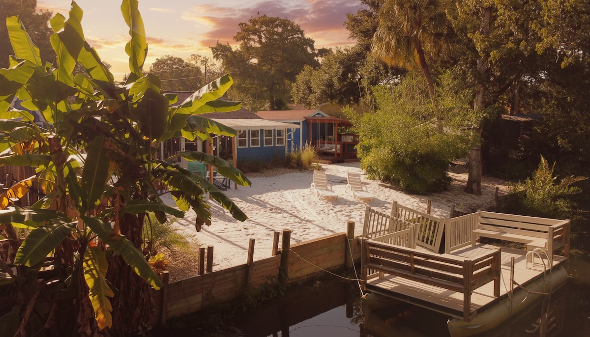 在維基瓦治河(Weeki Wachee River)上度過一生一次的完美假期。當地熱門體驗!配備齊全的海盜主題,500平方英尺的房源,配有1間臥室、1間浴室、全功能廚房和沙發床。配備創造獨特回憶所需的一切。在清澈的泉水河中與海牛一起游泳。在門廊上喝咖啡,俯瞰水景,晚上在火堆旁喝您最喜歡的飲料。包含皮艇。距離維基瓦治人魚、松島海灘和霍莫薩薩泉(Homosassa Springs)僅幾分鐘路程。