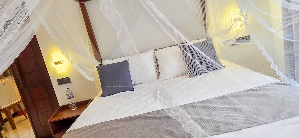 海灘上有長長的珊瑚礁,距離沙灘僅70公尺,形成我們著名的天然游泳池。有時候你可以和巨龜一起游泳。您可以全年24小時全天候游泳。我們提供您所需的所有服務。從機場接送到遊覽或一日遊、釣魚、沿著珊瑚礁浮潛到從 Unawatuna 潛水中心潛水、餐飲、阿育吠陀療法到瑜伽課程。請告訴我們您喜歡做什麼。