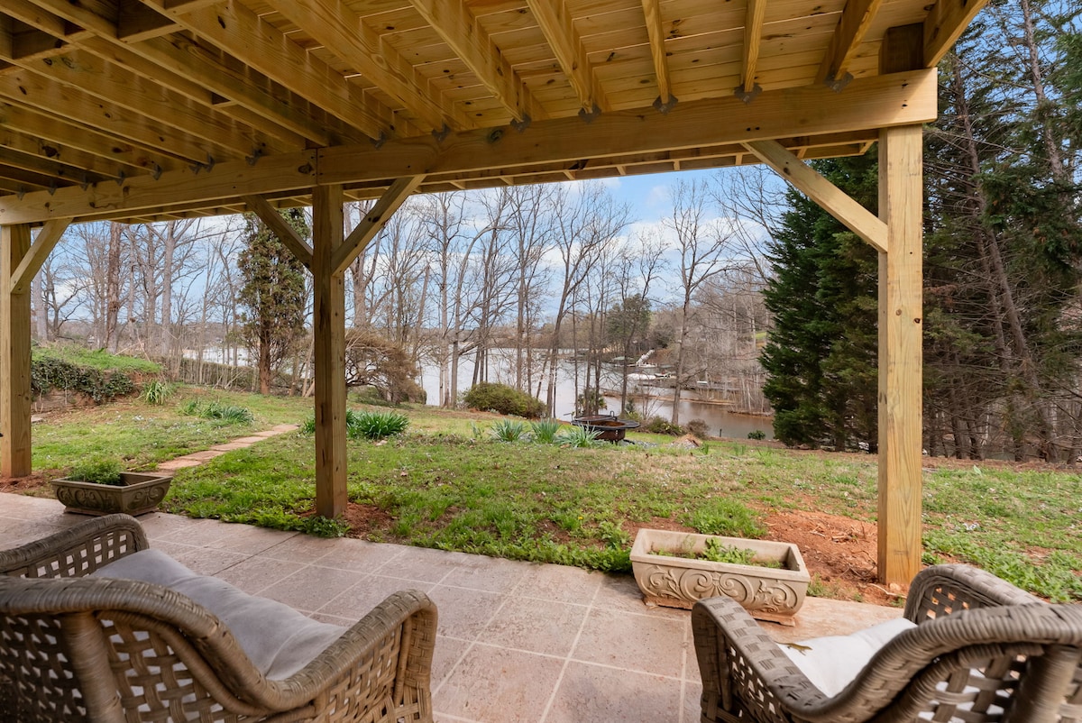 LAKEFRONT, awesome sunsets, amazing neighborhood with loads of charm! 3BR/2BA house on secluded acre plus wooded lot. Relax on large screened in porch with amazing lake views or in the hot tub built in deck. 2 bedrooms on main (king & queen) with hall bath & laundry. The upper loft bedroom has 2 full beds & bathroom overlooking the lake. Pet friendly w/fee fenced in backyard with doggie ramp! Awesome location just minutes to both I-26 and I-85. Easy access to Spartanburg, Greenville, & Greer!